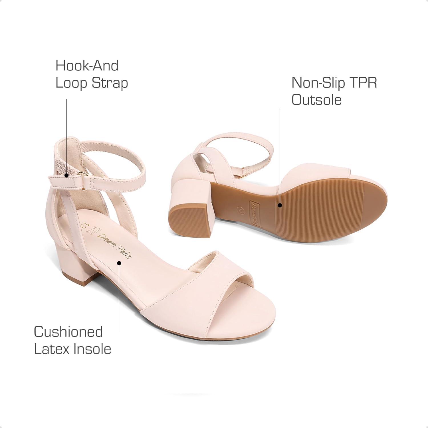 DREAM PAIRS Girls Sandals Chunky Pump Ankle Strap High Heels Dress Open Toe Flower Wedding Party for Little Big Kid(Nude)