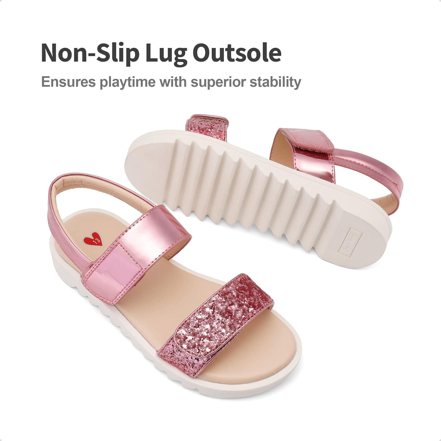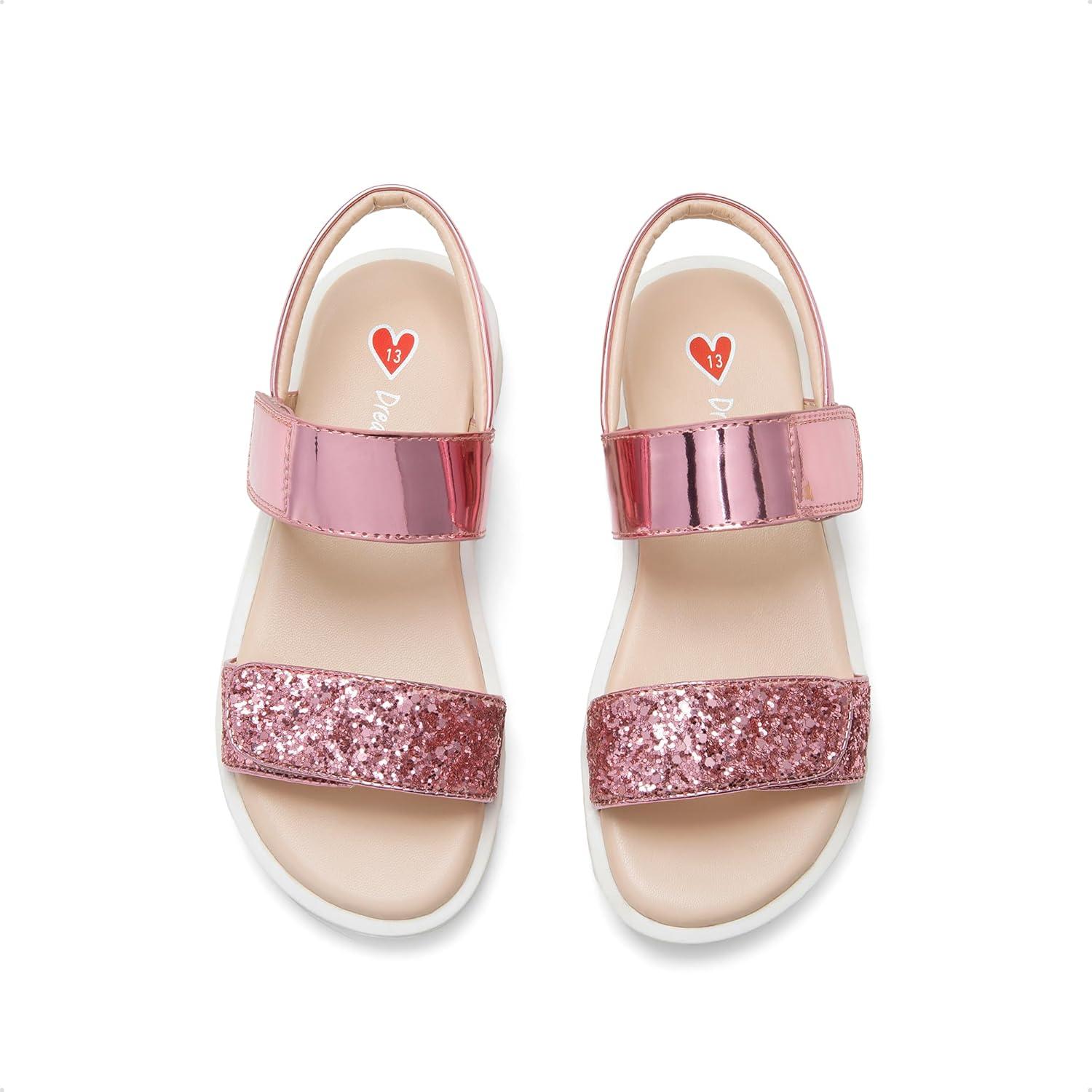 DREAM PAIRS Girls Sandals Glitter Two Strapped Casual Open Toe Sandals Little Kid/Big Kid(Hot Pink)