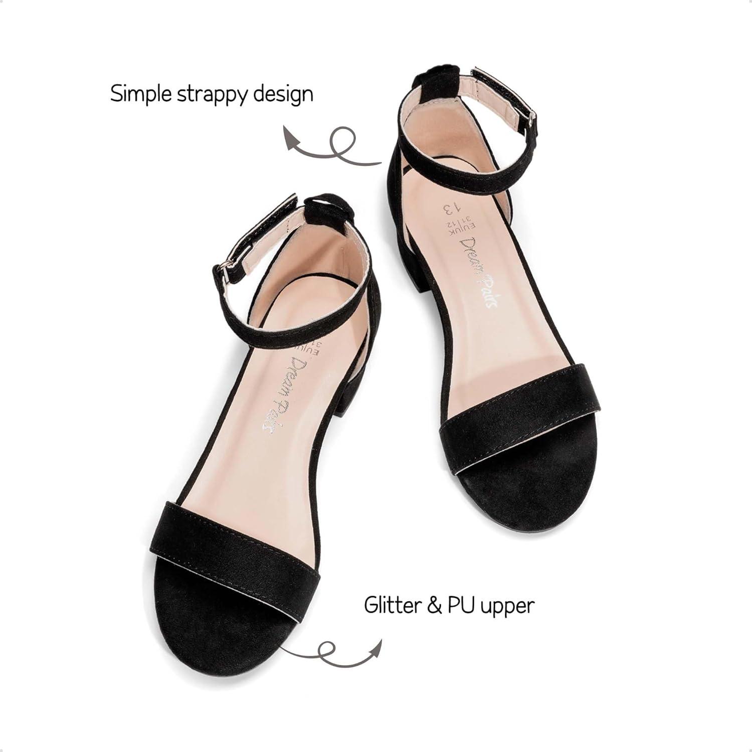 DREAM PAIRS Girls Sandals Low Heel Dress Pump Ankle Strap Interchangeable Bow Flower Wedding Party Shoes for Little Kid/Big Kid(Black-suede)