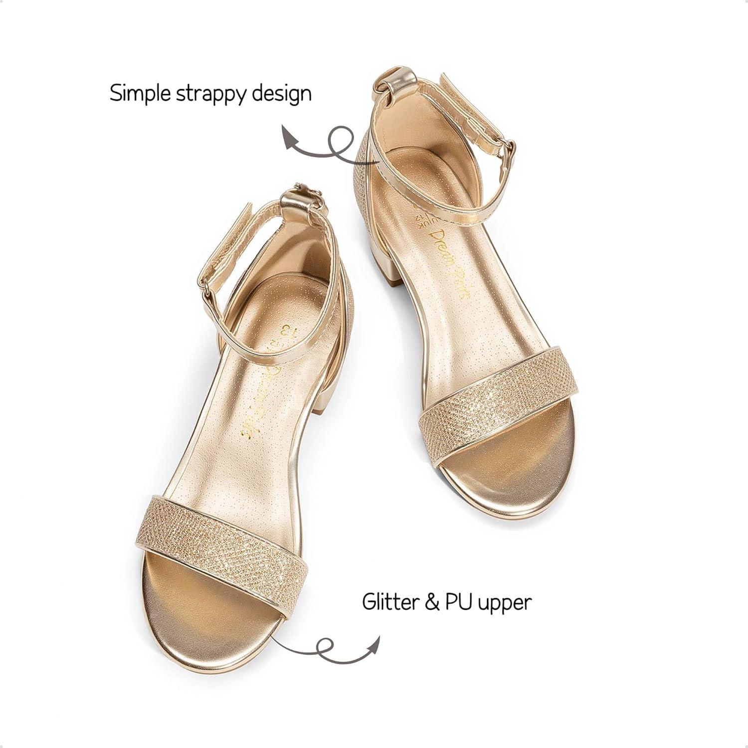 DREAM PAIRS Girls Sandals Low Heel Dress Pump Ankle Strap Interchangeable Bow Flower Wedding Party Shoes for Little Kid/Big Kid(Gold-glitter)