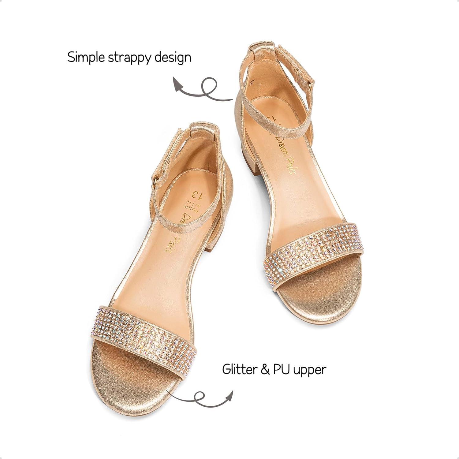DREAM PAIRS Girls Sandals Low Heel Dress Pump Ankle Strap Interchangeable Bow Flower Wedding Party Shoes for Little Kid/Big Kid(Gold)