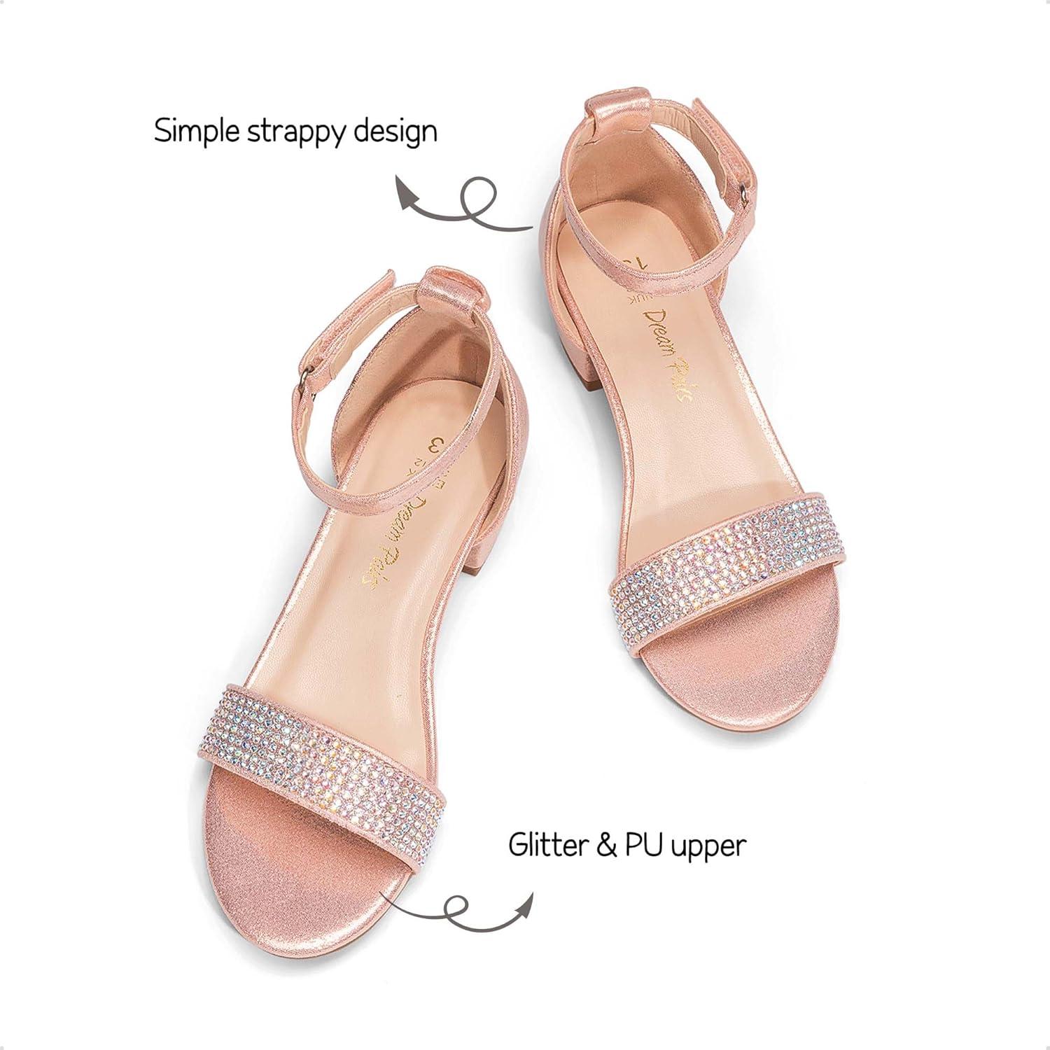DREAM PAIRS Girls Sandals Low Heel Dress Pump Ankle Strap Interchangeable Bow Flower Wedding Party Shoes for Little Kid/Big Kid(Rose Gold)