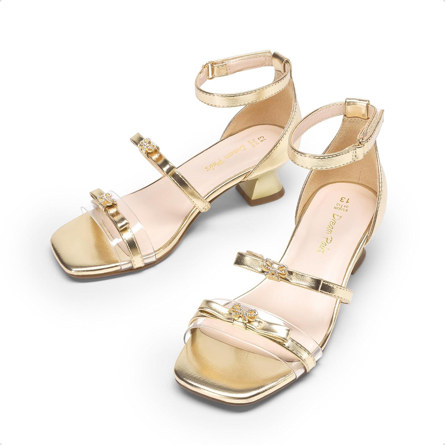 DREAM PAIRS Girls Sandals Low Heel Dress Pump Ankle Strap Two Strapped Bow Flower Wedding Party Shoes for Little Kid/Big Kid(Gold)