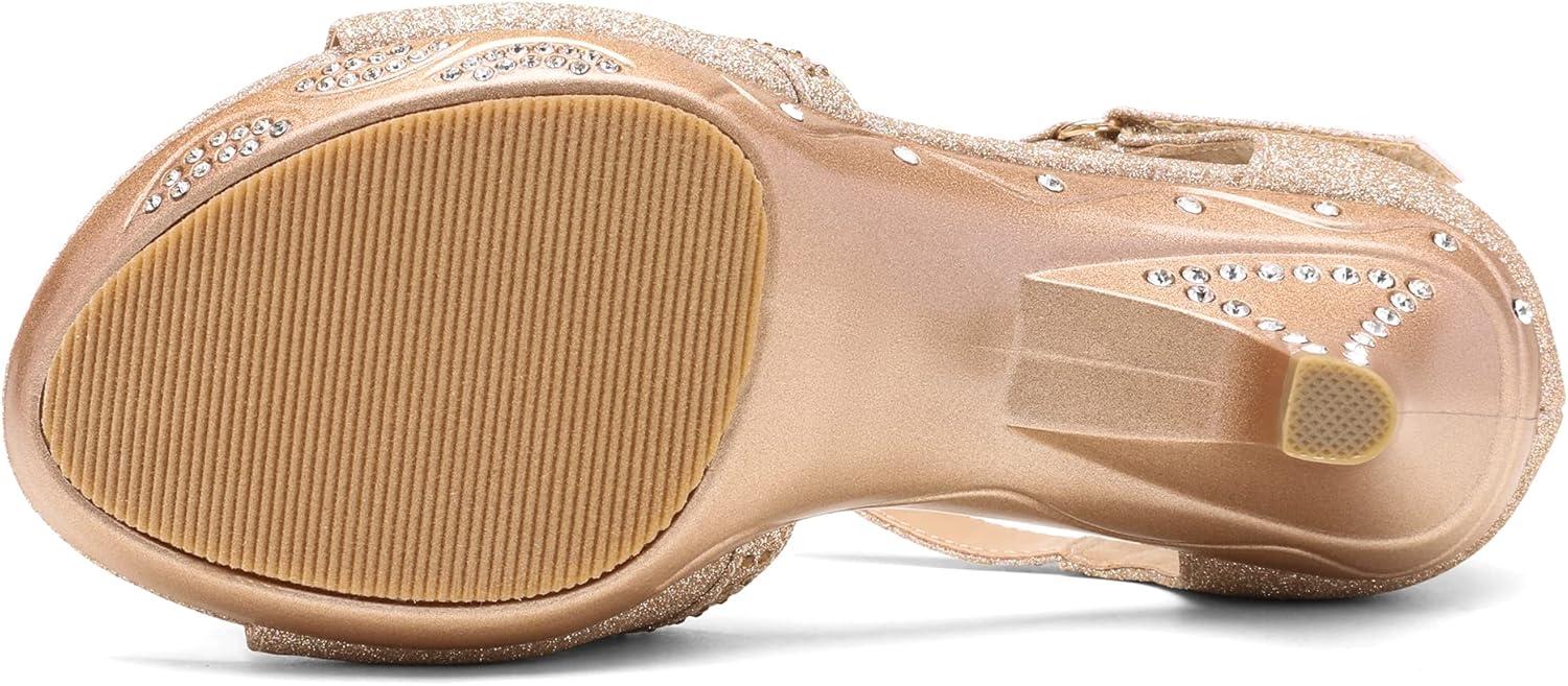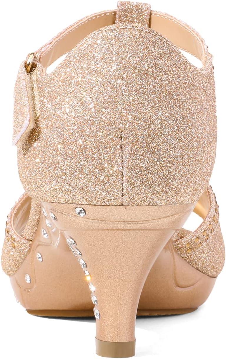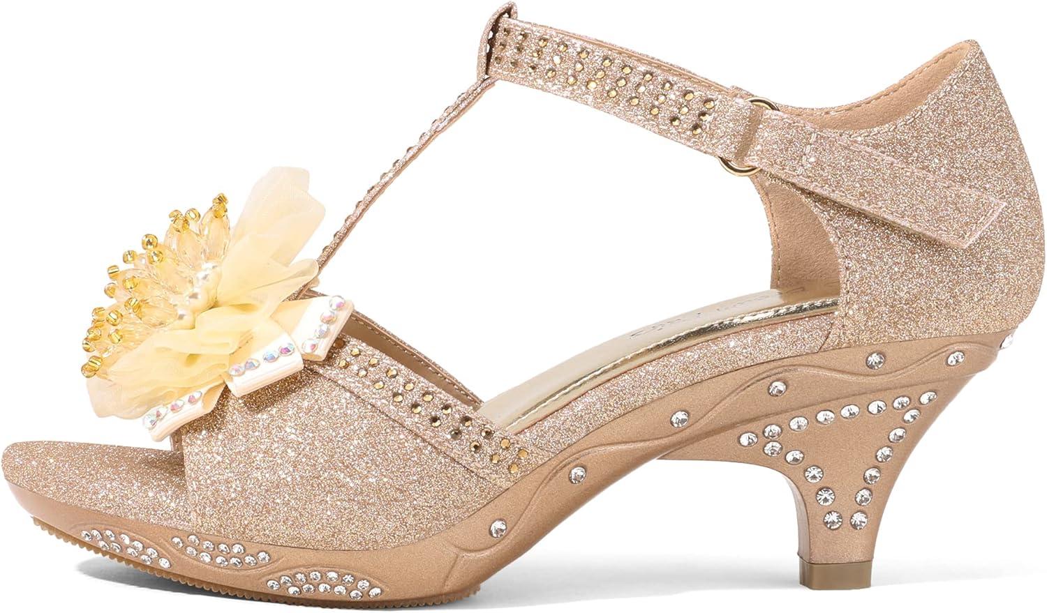 DREAM PAIRS Girls Sandals Low Heel Dress Pump Ankle T Strap Flower Shoes Toddler/Little Kid/Big Kid(Gold)