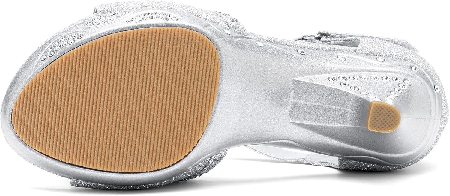 DREAM PAIRS Girls Sandals Low Heel Dress Pump Ankle T Strap Flower Shoes Toddler/Little Kid/Big Kid(Silver)