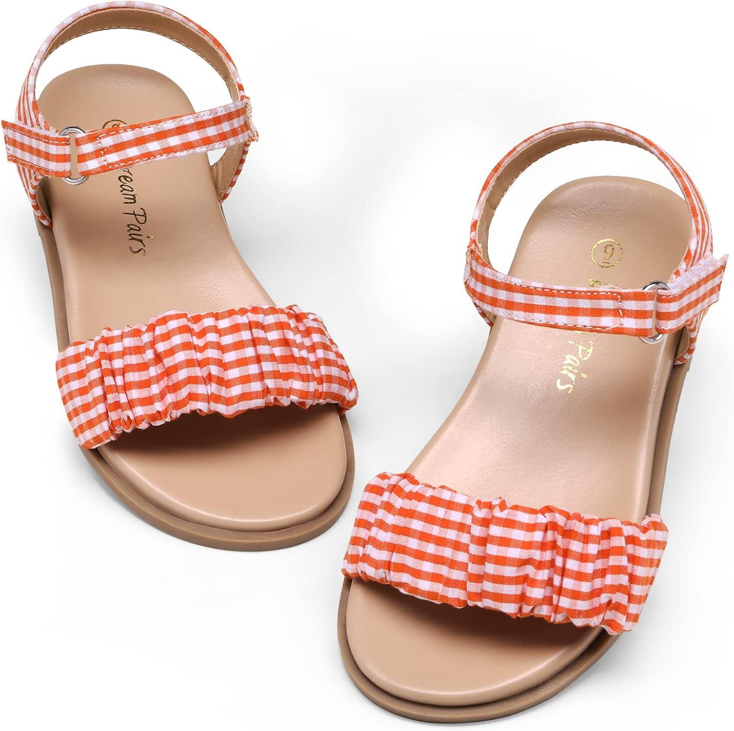 DREAM PAIRS Girls Sandals Open-Toe Princess Dress Flat Sandals Summer Shoes(Toddler/Little Kid)(Orange)