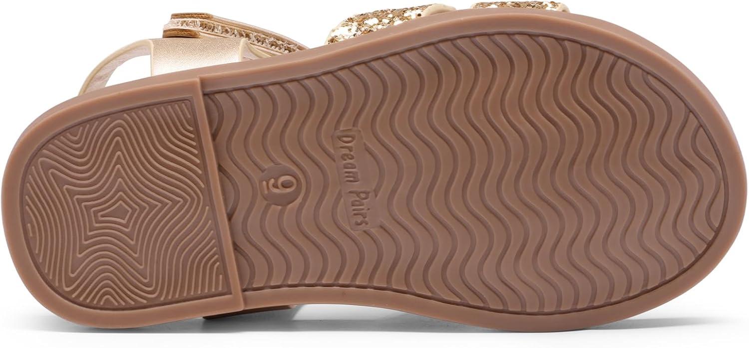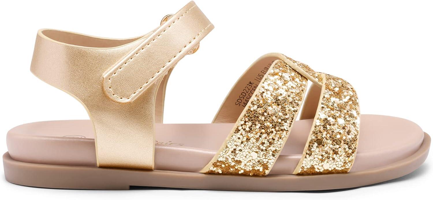 DREAM PAIRS Girls Sandals Open Toe Princess Flat Sandals Strappy Summer Shoes Toddler/Little Kid(Gold-glitter)