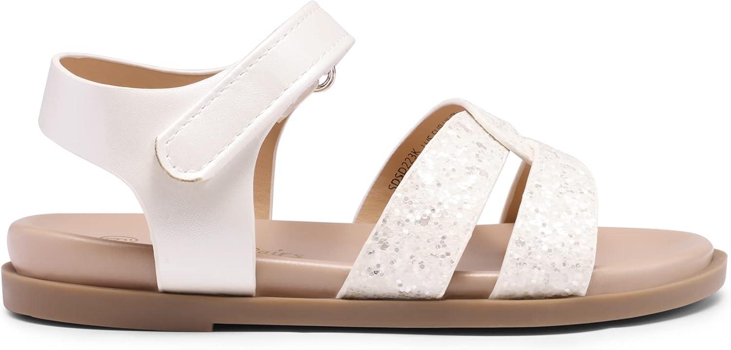DREAM PAIRS Girls Sandals Open Toe Princess Flat Sandals Strappy Summer Shoes Toddler/Little Kid(White-glitter)