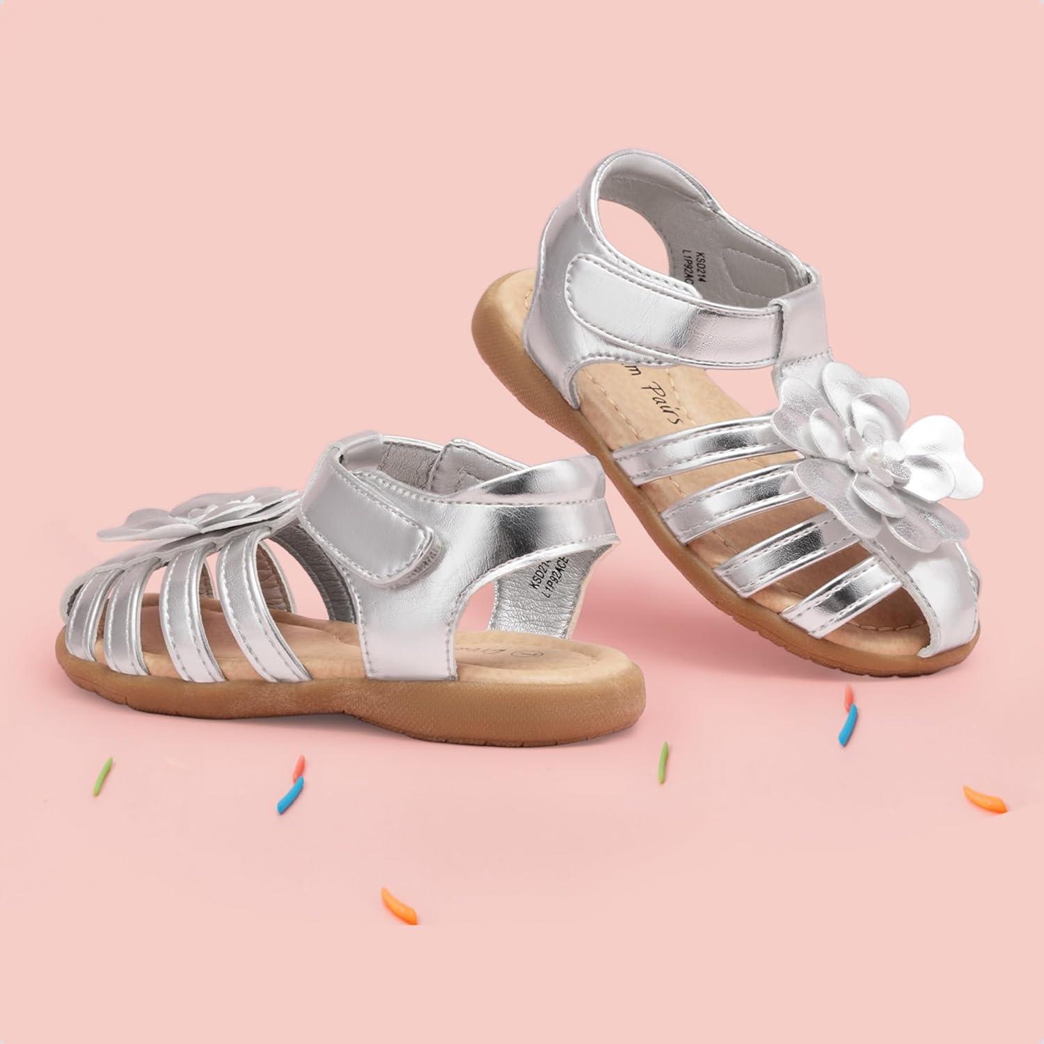 DREAM PAIRS Girls Toddler/Little Kid Closed-Toe Flower Summer Dress Sandals Shoes(Silver)