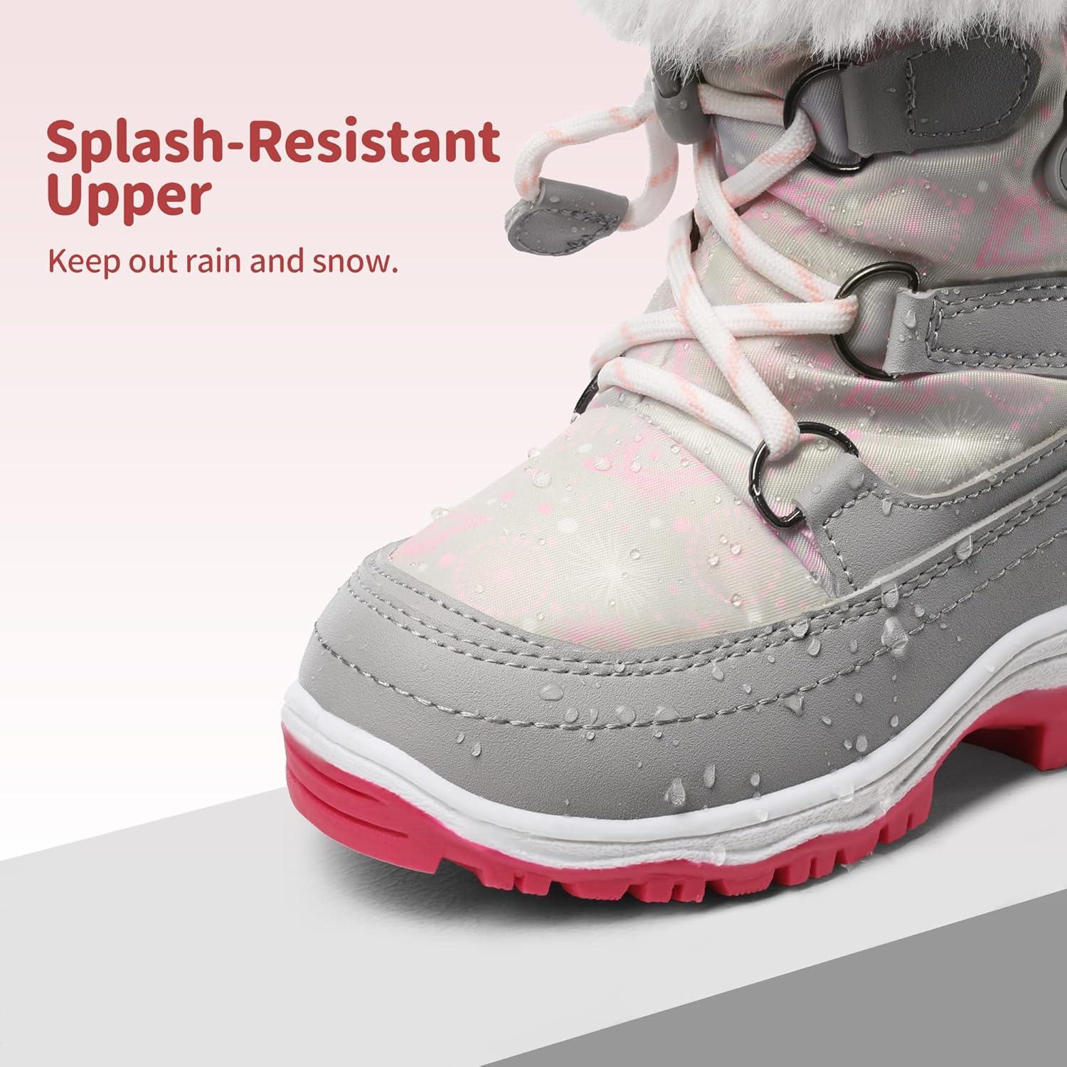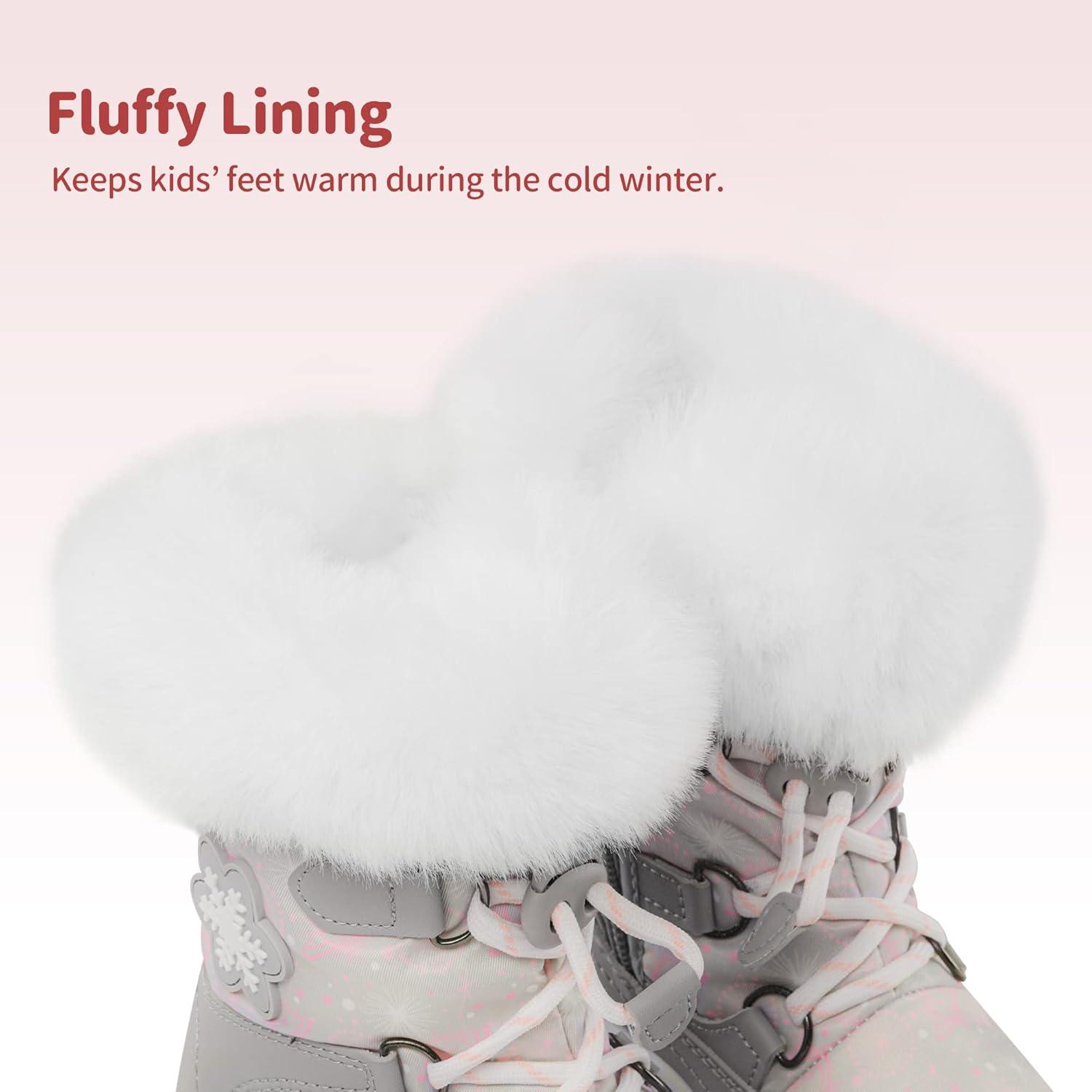 DREAM PAIRS Girls Toddler Snow Boots Slip Resistant Faux Fur Lined Mid Calf Little Kids Winter Shoes(Gray/White)