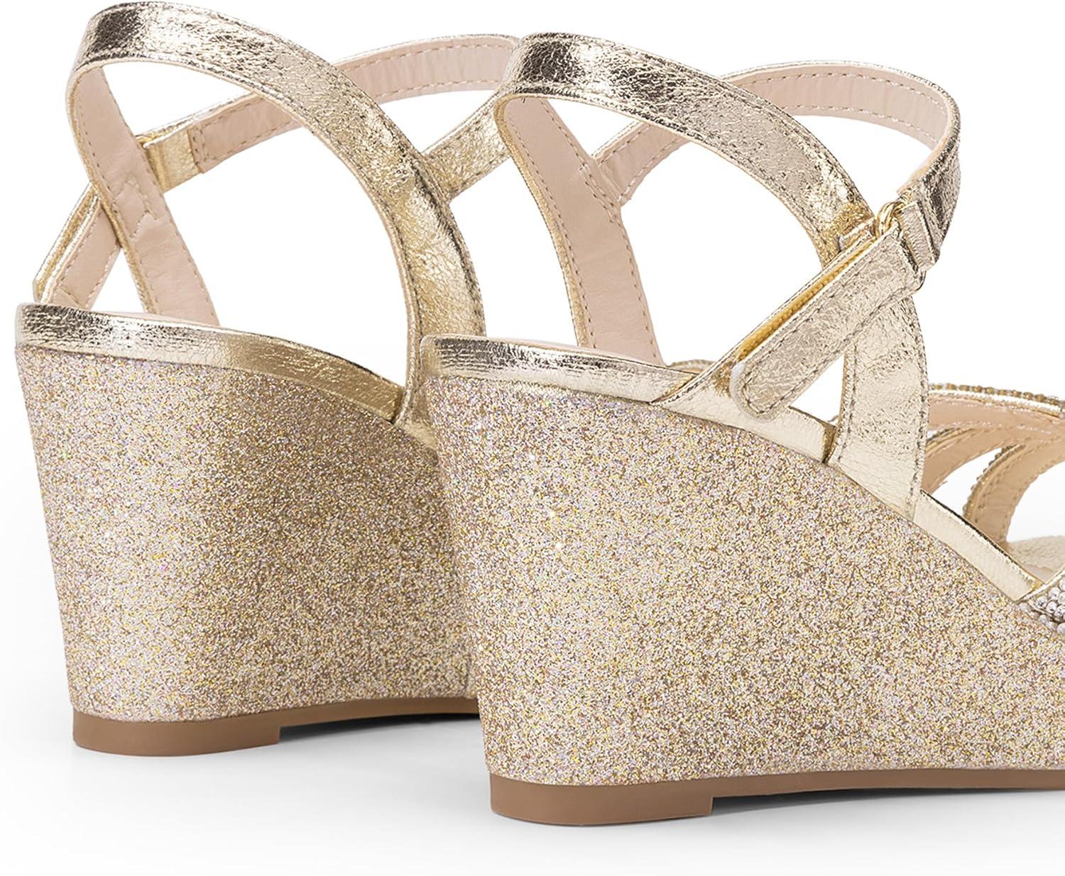 DREAM PAIRS Girls Wedge Sandals Flatform Open Toe Summer Platform Sandals Flower Wedding Party for Little Kid/Big Kid(Gold)