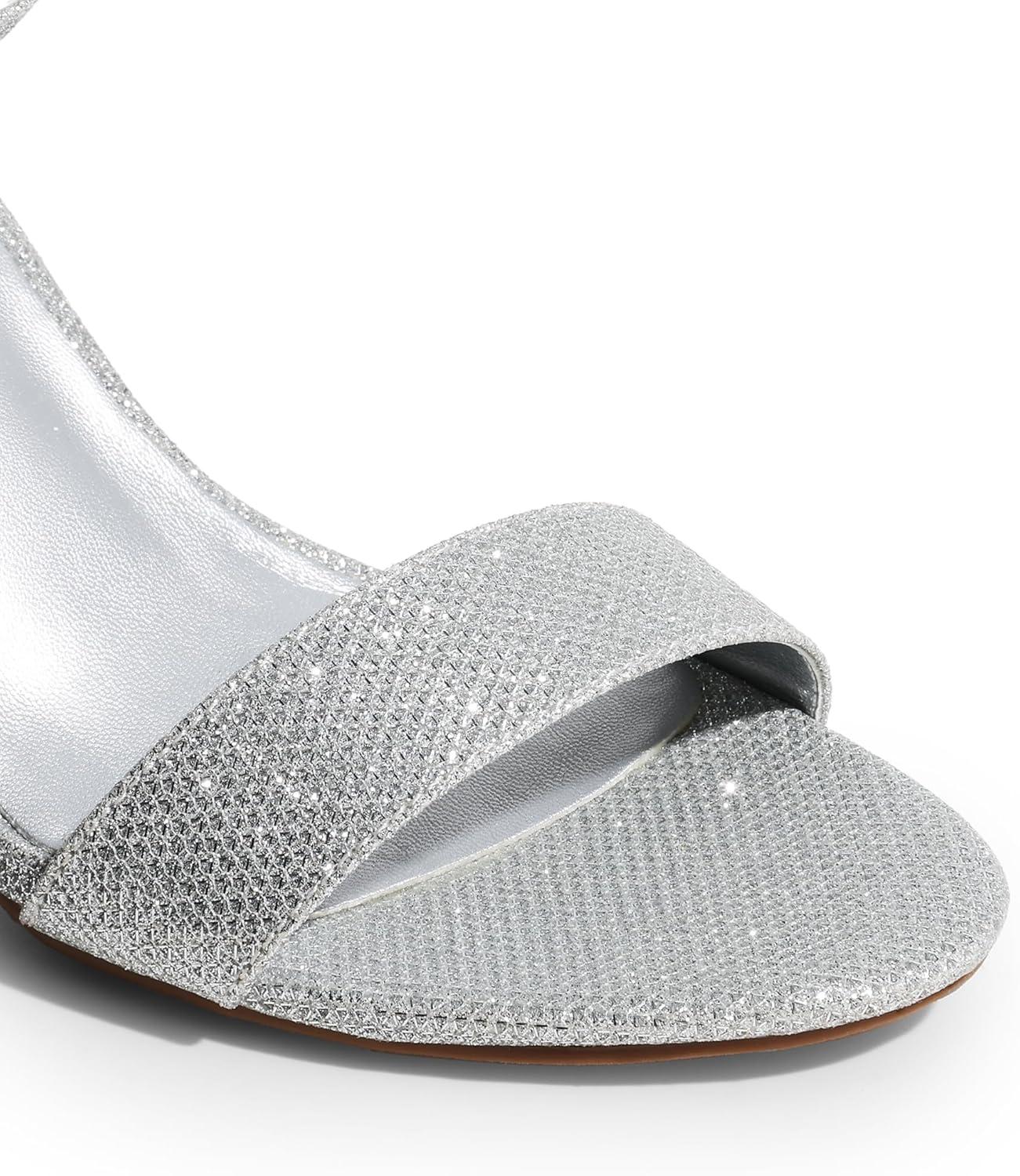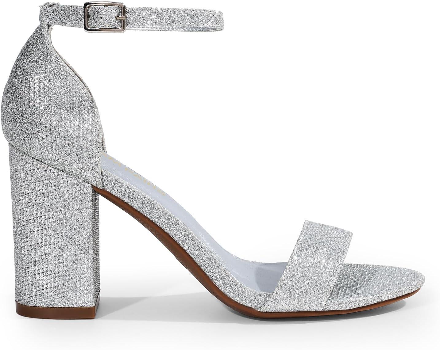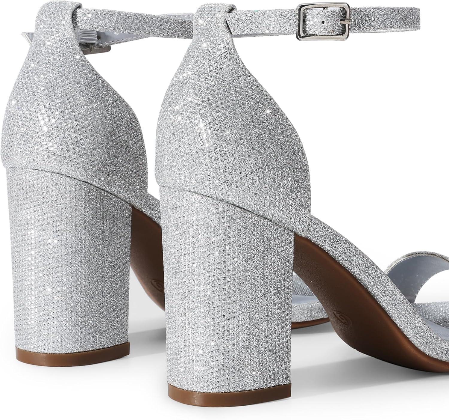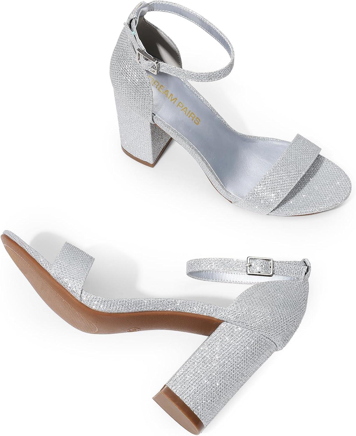 DREAM PAIRS Heels for Women Chunky Block Heel Open Toe Ankle Strap 3.5 Inch Heeled Sandals for Party Date Wedding(Silver)