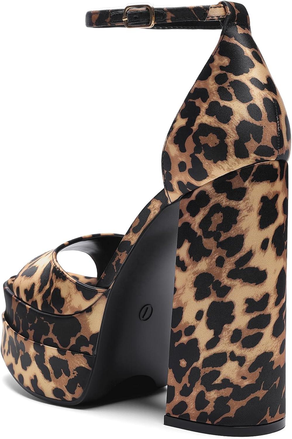 DREAM PAIRS High Heels Chunky Block Platform Heels for Women Ankle Strap Sexy Open Square Toe Heels Dressy Pumps Sandals(Leopard)