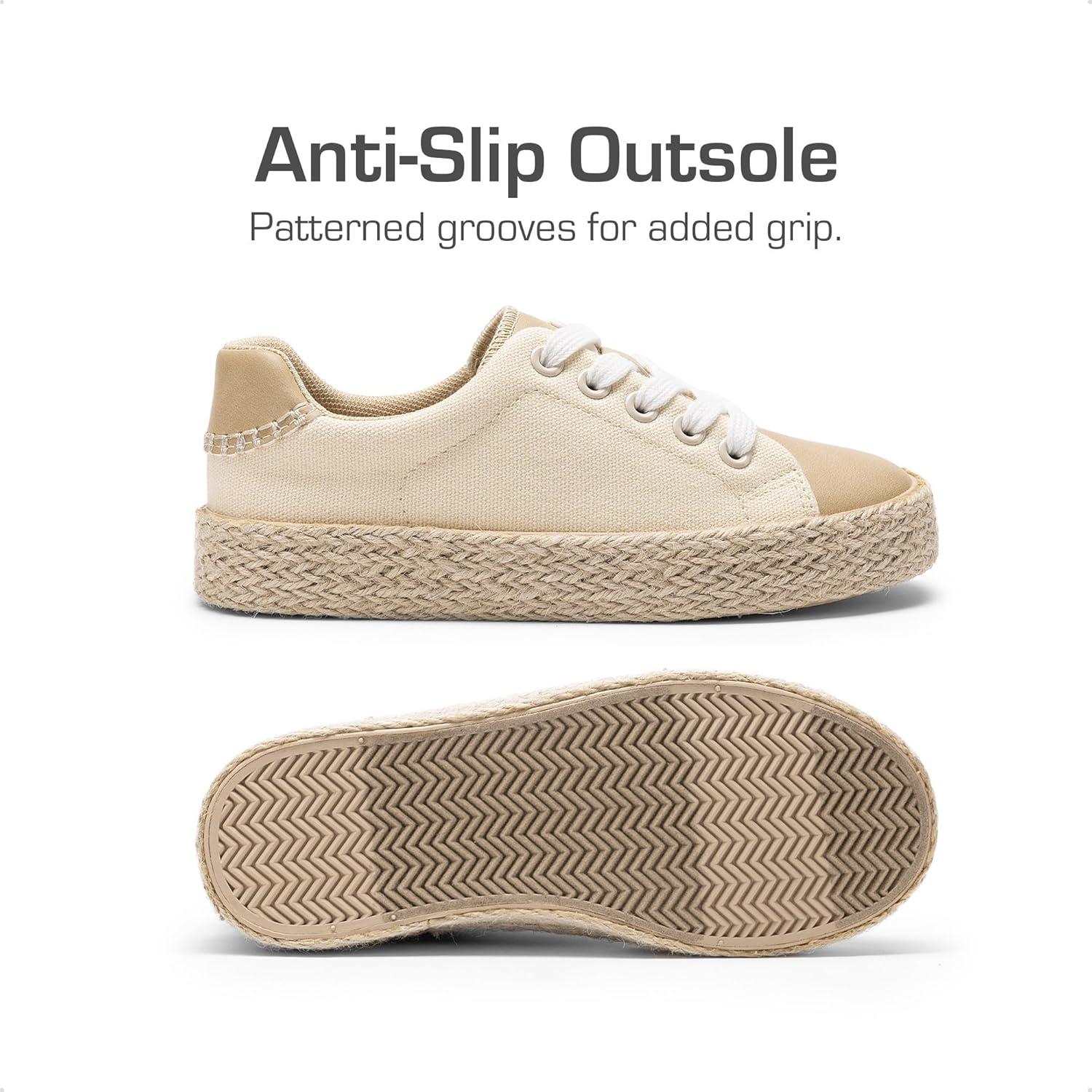 DREAM PAIRS Kid Boys Girls Sneakers Canvas Espadrille Lace Up Walking Casual Shoes(Beige)