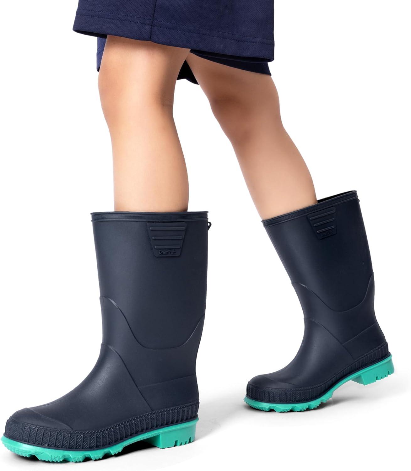 DREAM PAIRS Kids Rain Boots Easy-On Lightweight Non-Slip Outsole for Boys & Girls Outdoor Rainy Day Play(Navy/Green)