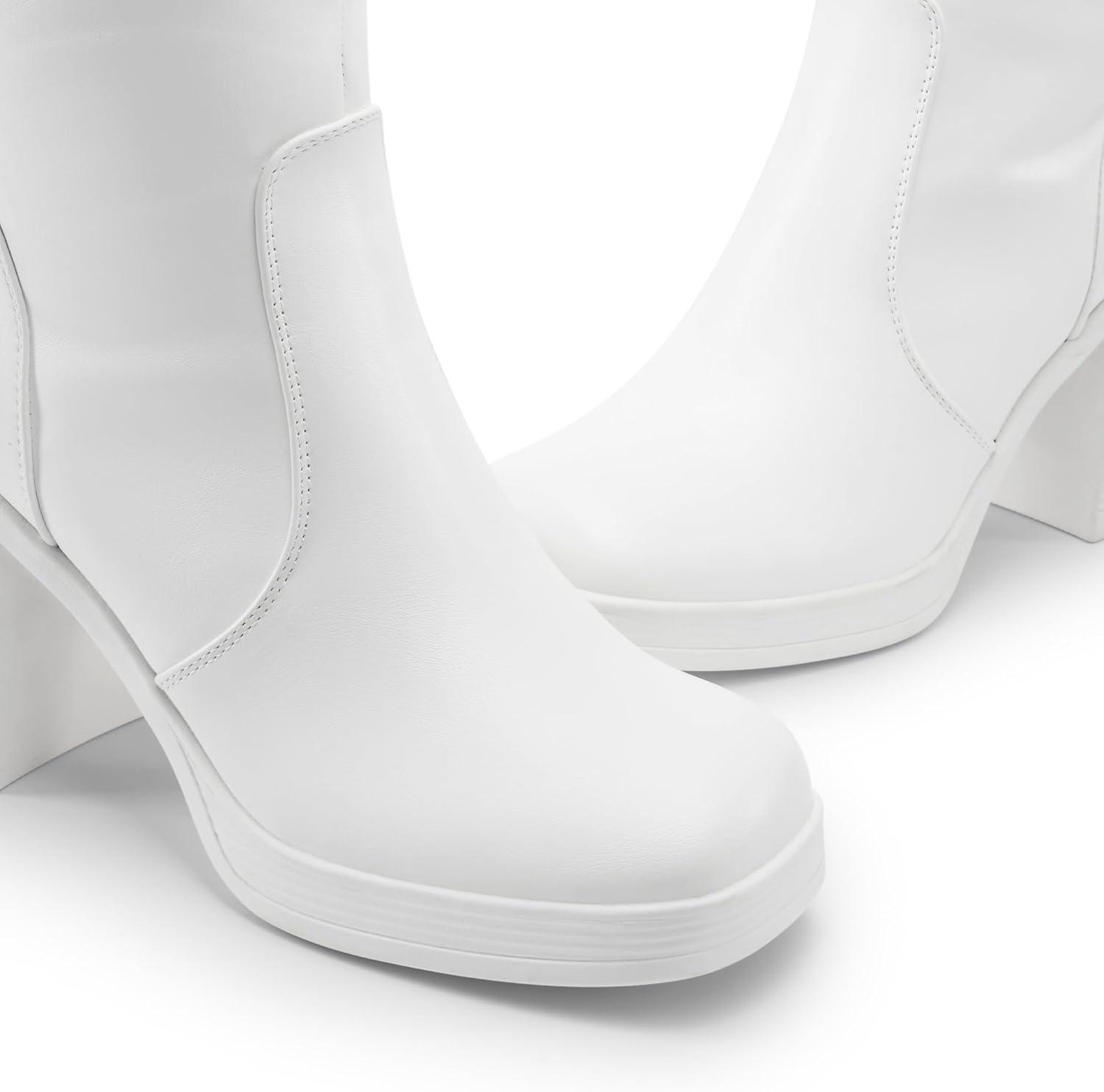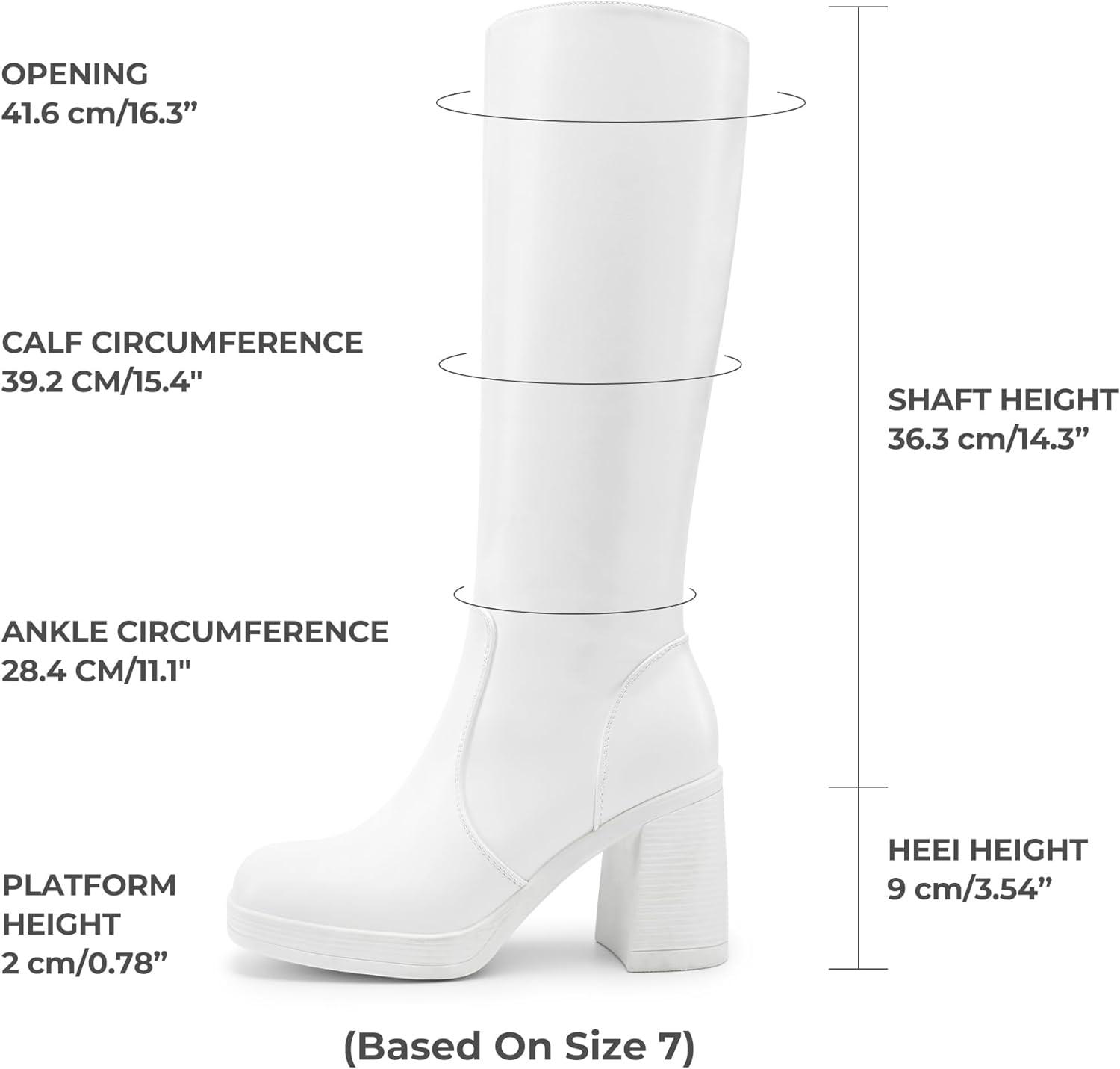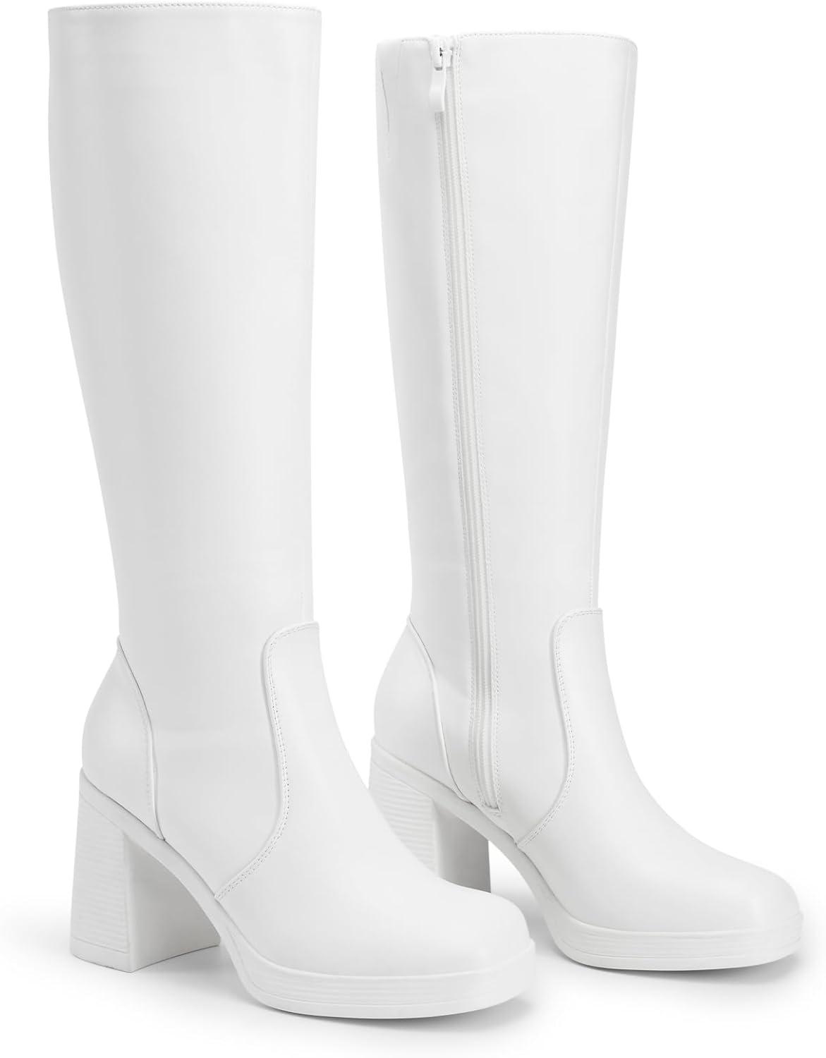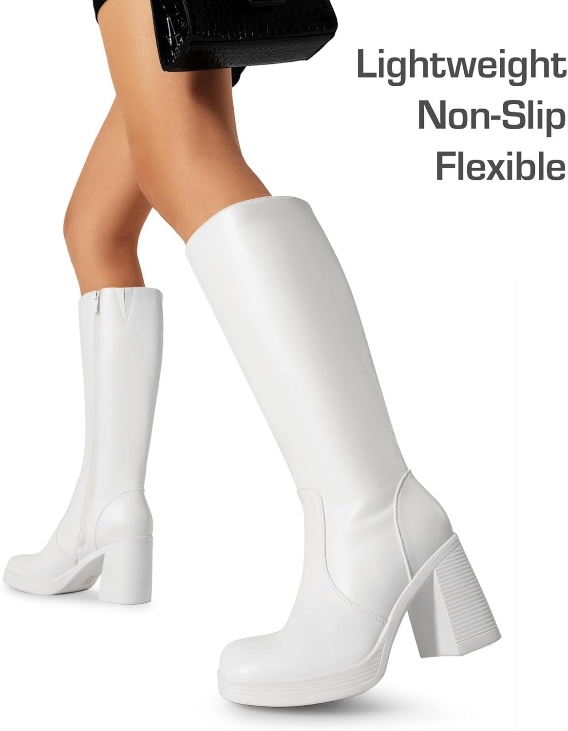 DREAM PAIRS Knee High Boots for Women Platform Square Toe Chunky Block Heeled Stylish Comfortable Tall Boots with Side Zipper(White-pu)