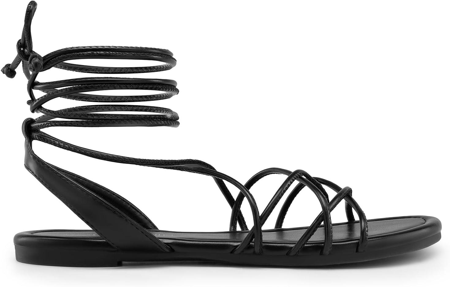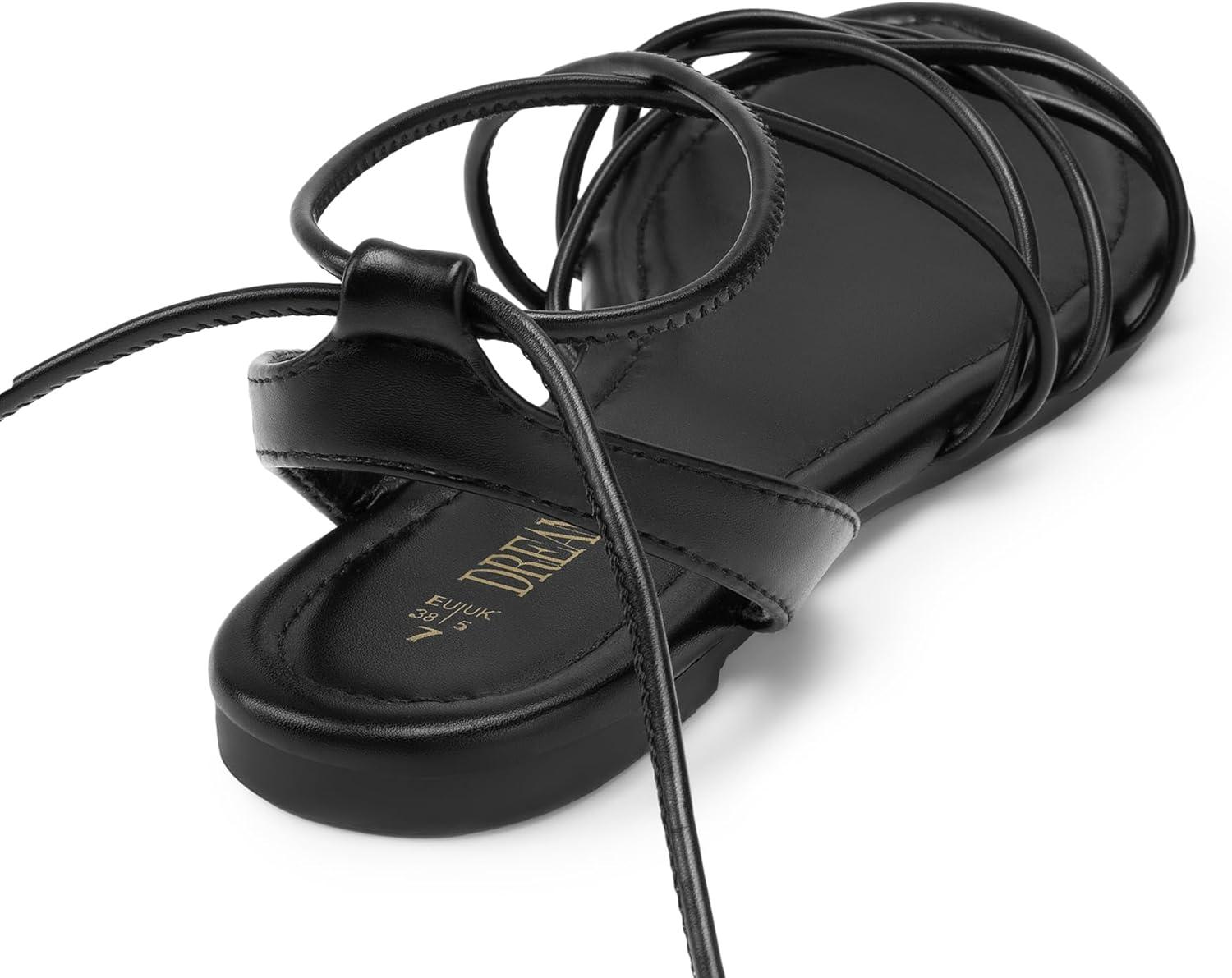 DREAM PAIRS Lace-up Gladiator Sandals Strappy Dressy Summer Flat Sandals for Women(Black)