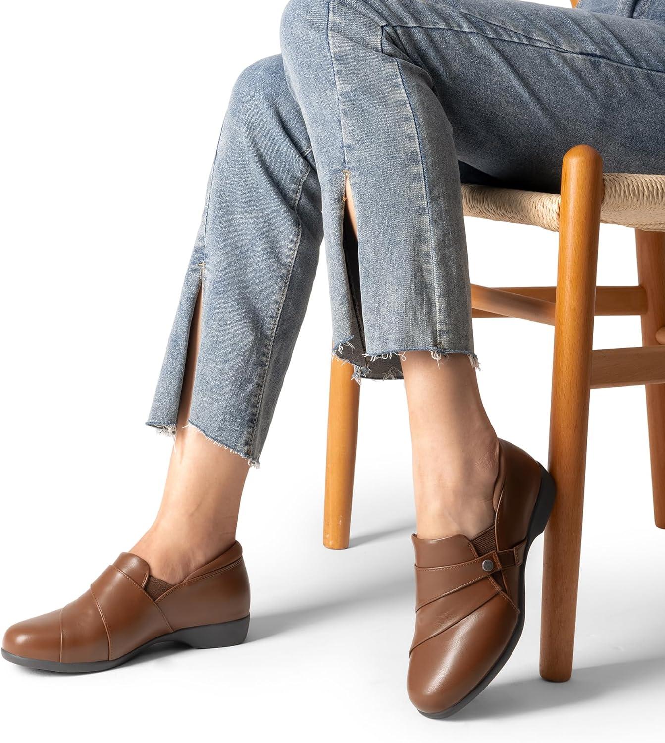 DREAM PAIRS Loafers for Women Slip-on Dressy Comfortable Business Casual Work Office Faux Leather Loafer Shoes with Arch Support(Tan)