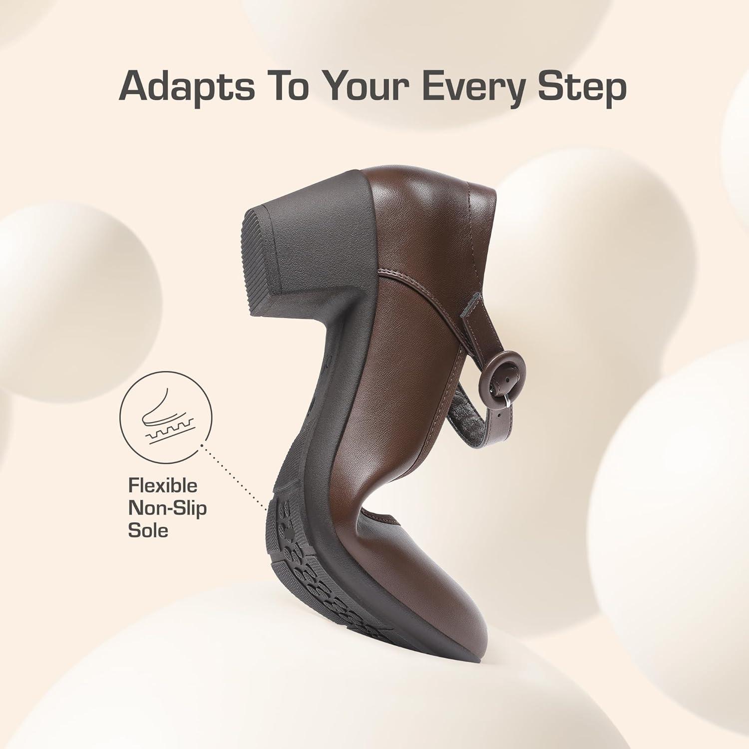 DREAM PAIRS Mary Jane Shoes Women Low Chunky Heels Closed Toe Pumps Comfortable Work Business Dress Shoes(Brown)