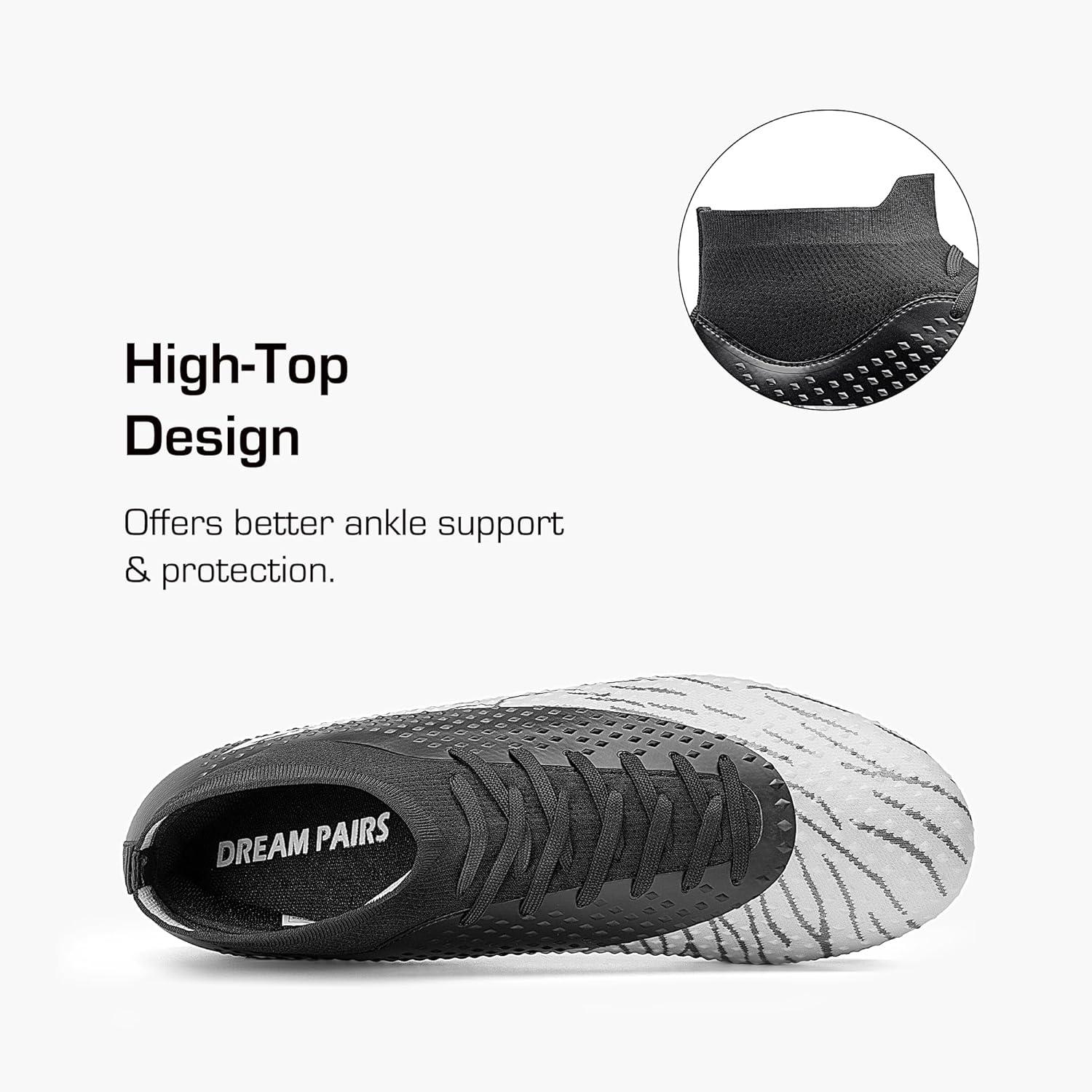 DREAM PAIRS Men’s Firm Ground Soccer Cleats High-top Football Cleats FG/AG Professional Training Outdoor Lightweight Soccer Shoes(Black/Light Grey)