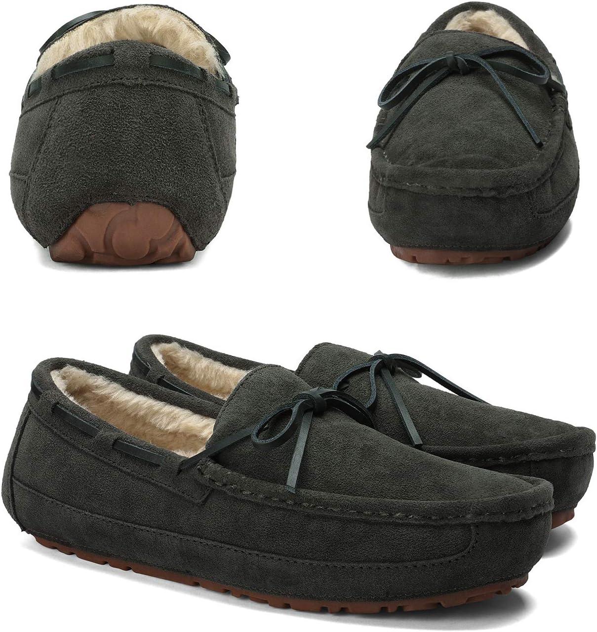 DREAM PAIRS Men’s House Slippers Moccasin Indoor Outdoor Fuzzy Furry Loafers Suede Leather Warm Comfortable Shoes(02-grey)