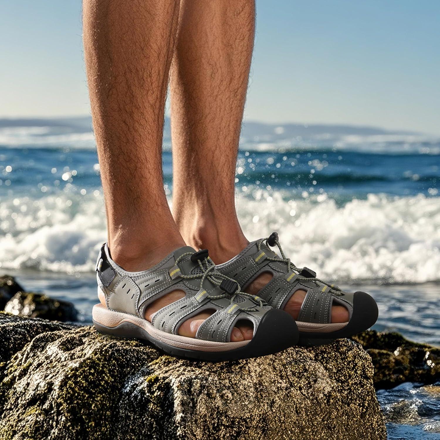 DREAM PAIRS Men’s Support Sandals: Athletic, Outdoor, Quick-Dry Mesh, Closed Toe, Lightweight, Comfortable Water Shoes(Grey)
