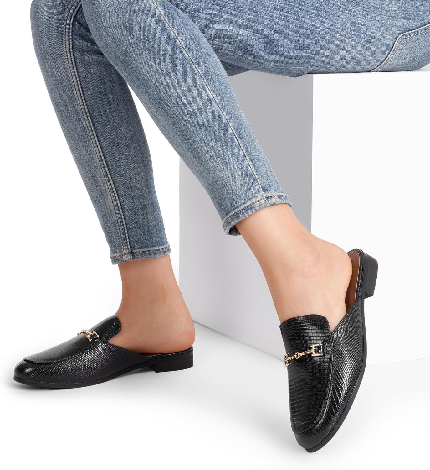 DREAM PAIRS Mules for Women Flats Comfortable Buckle Mules Slip on Slides Backless Loafers Shoes(Black-snake)