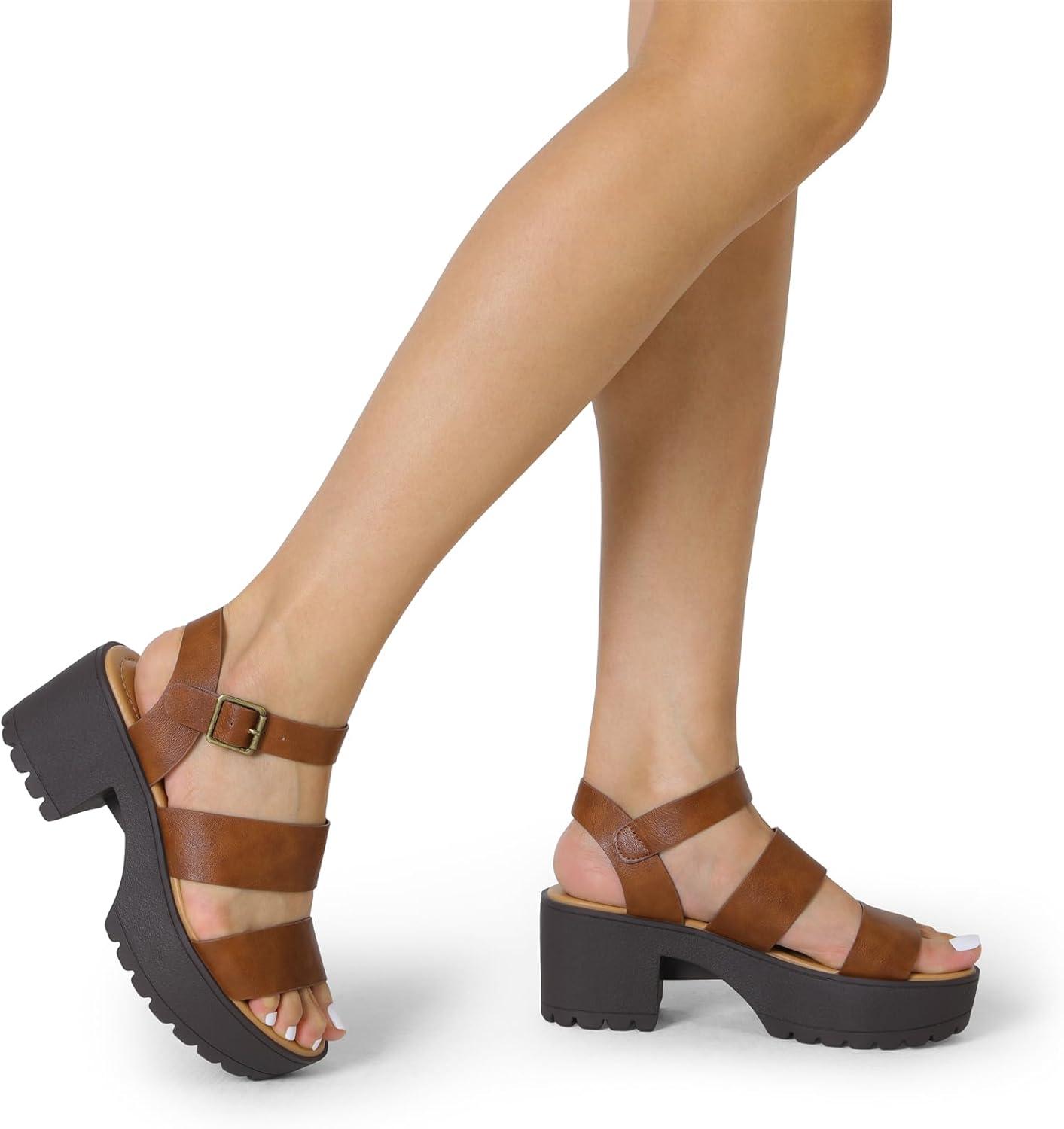 DREAM PAIRS Platform Heels for Women Lightweight Chunky Open Toe Stylish Comfortable Fisherman Sandals with Adjustable Ankle Strap(Brown)