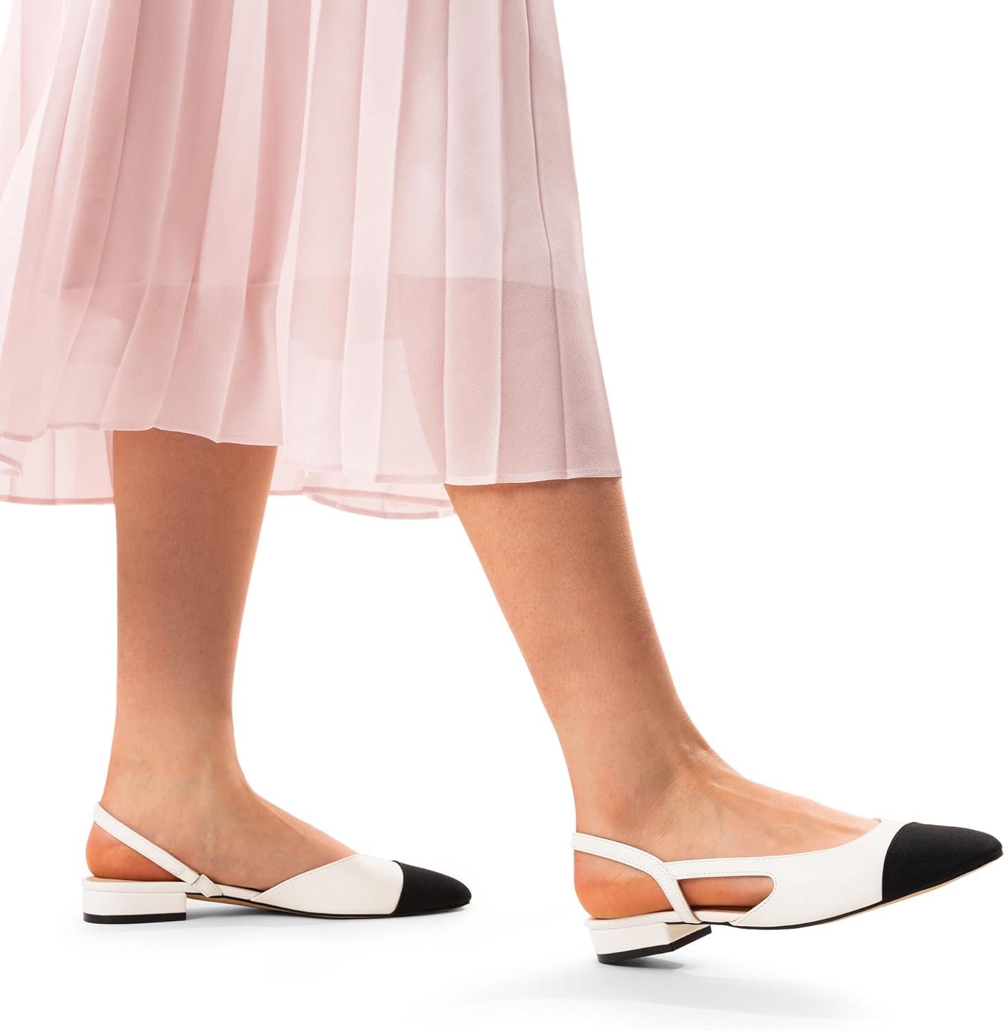 DREAM PAIRS Slingback Ballet Flats for Women Square Cap Toe Low Heel Dress Shoes Comfortable Work Flats for Office Party Wedding Business Casual(White)