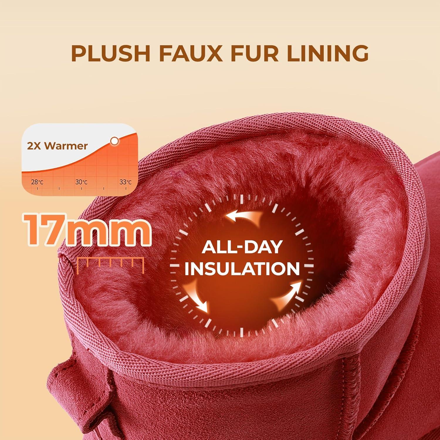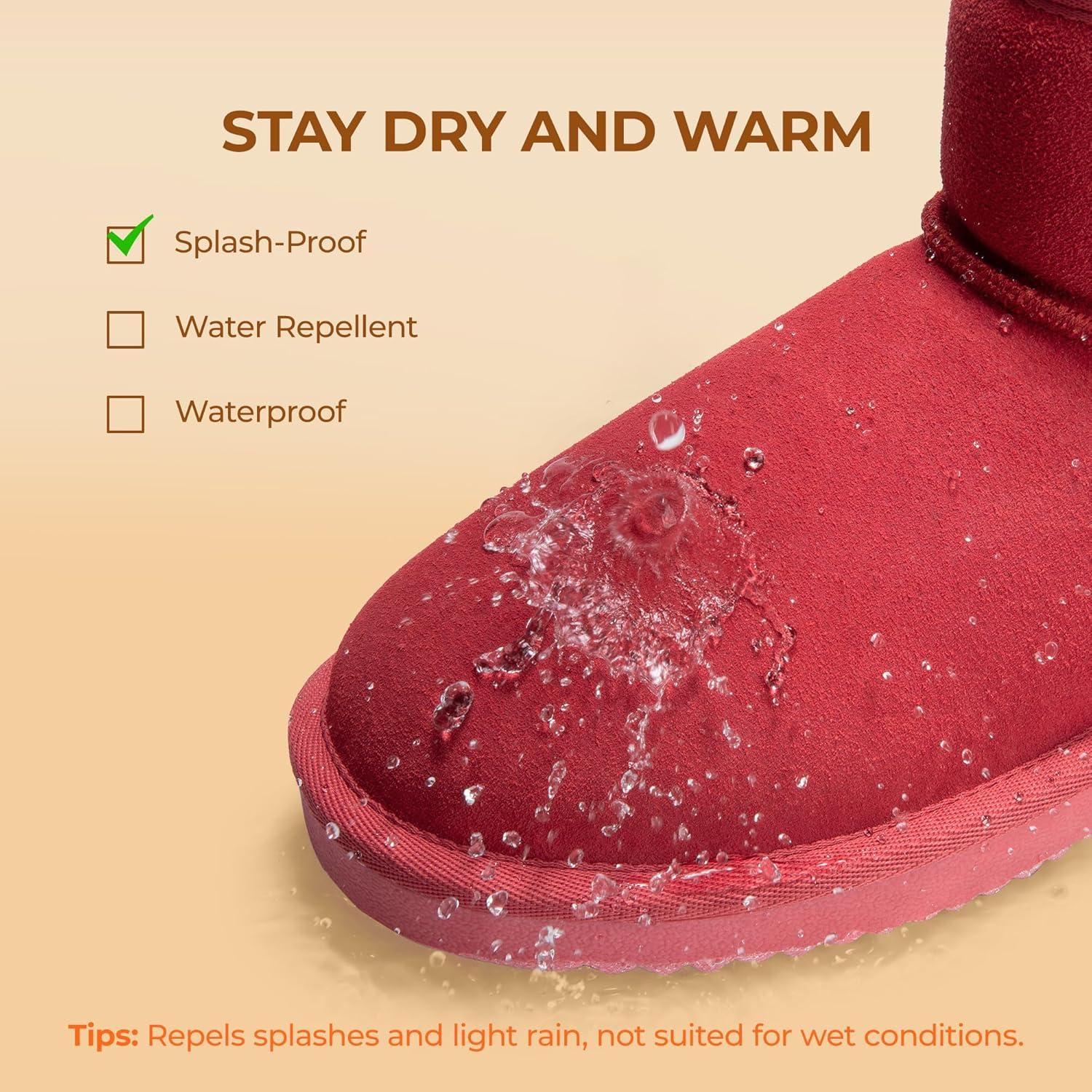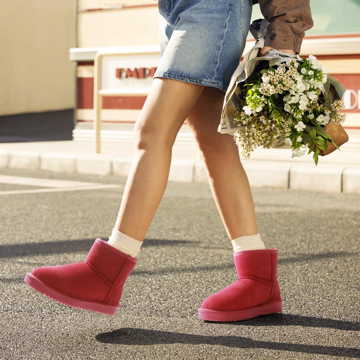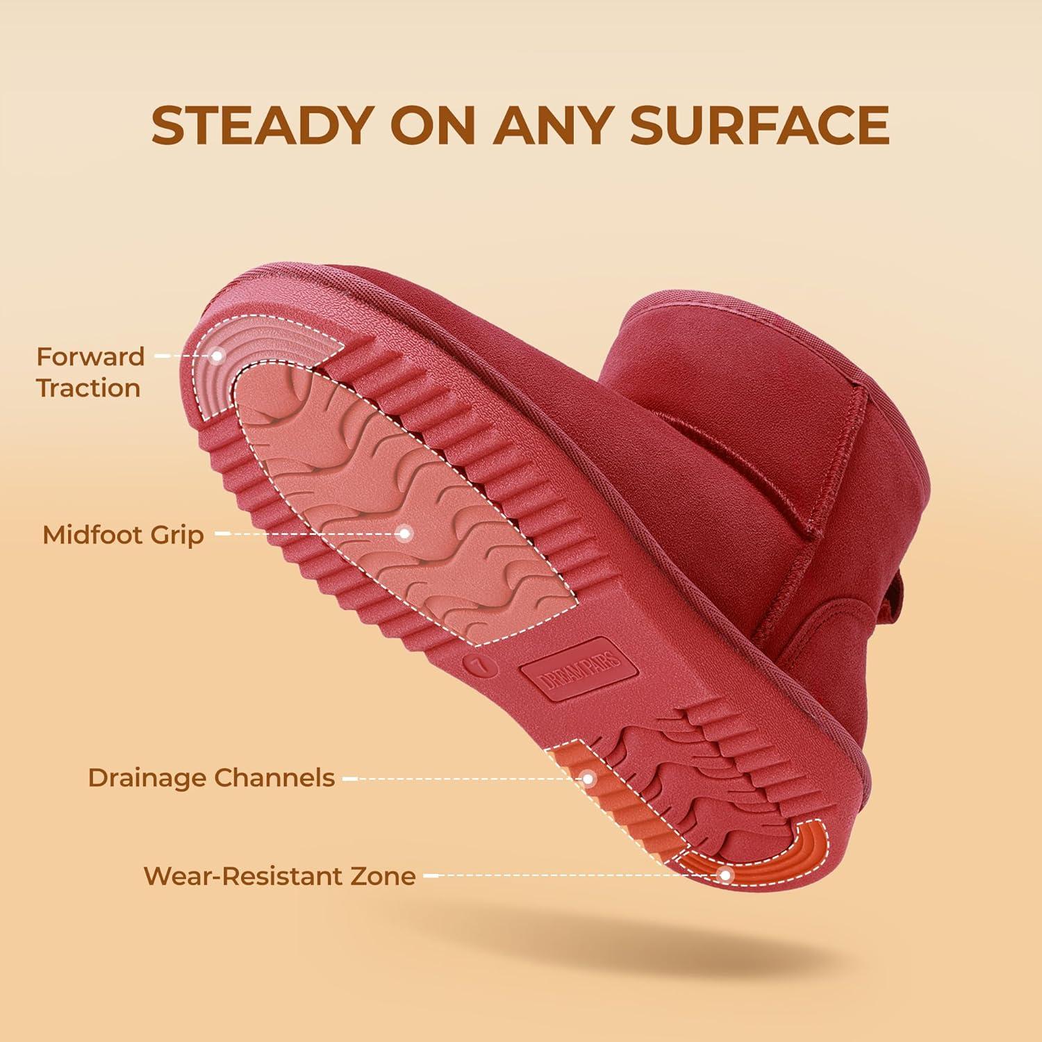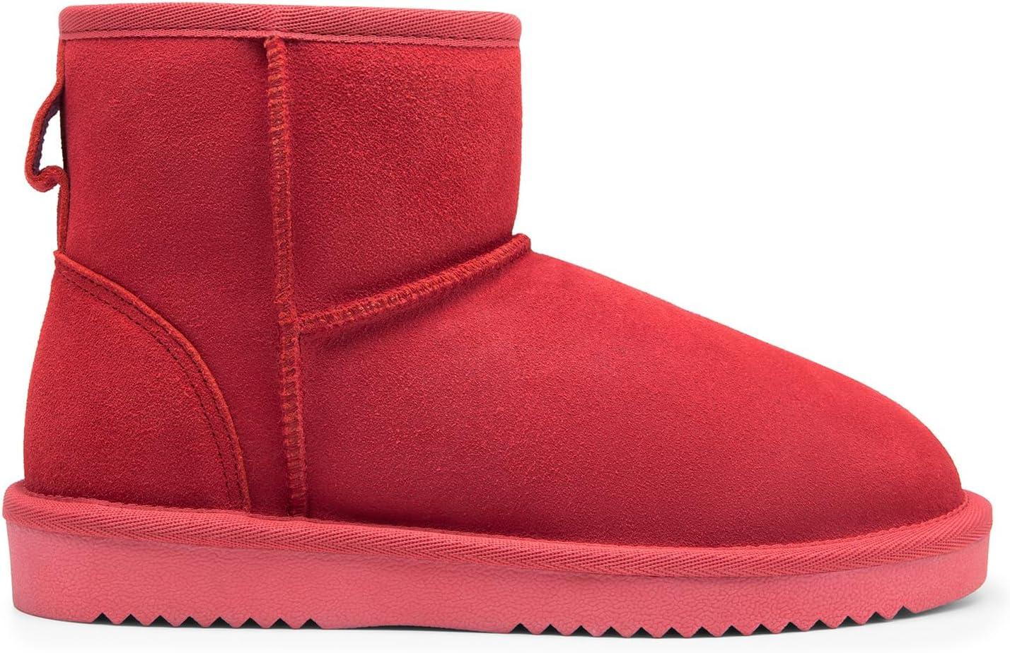 DREAM PAIRS Snow Boots for Women Genuine Suede Faux Fur Lining Anti-Slip Warm Winter Booties Slip On Memory Foam Ankle Boots FuzzyClassicⅡ Low Boots(Red)