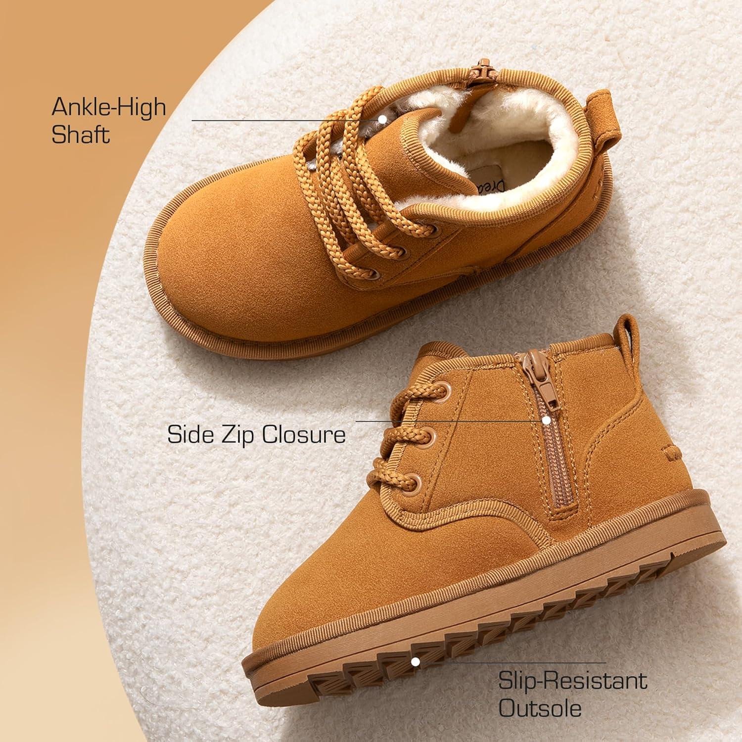 DREAM PAIRS Toddler Boots Kids Boys Girls Winter Zipper Warm Faux Fur FuzzyGo Kid’s Cozy Walking Ankle Boots(Chestnut)