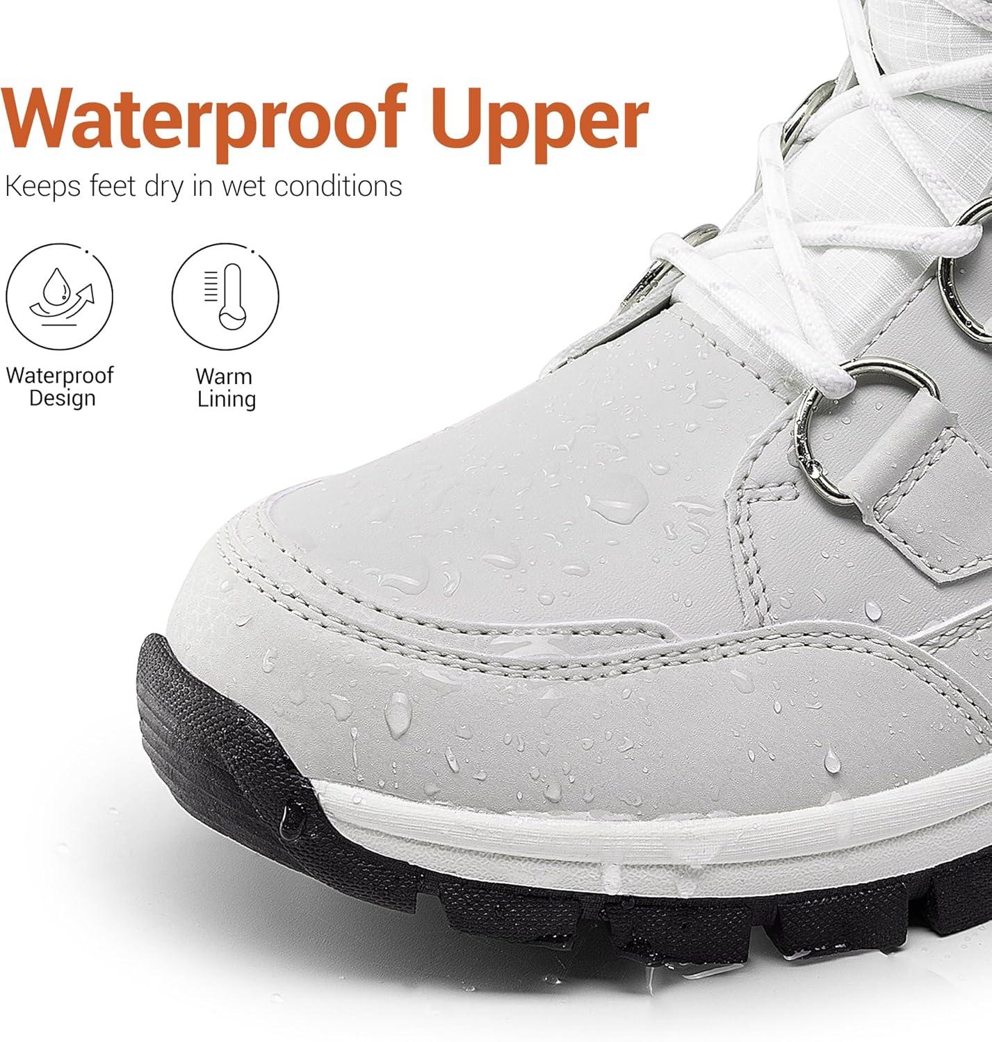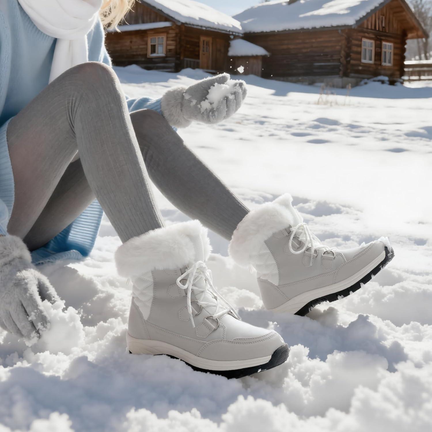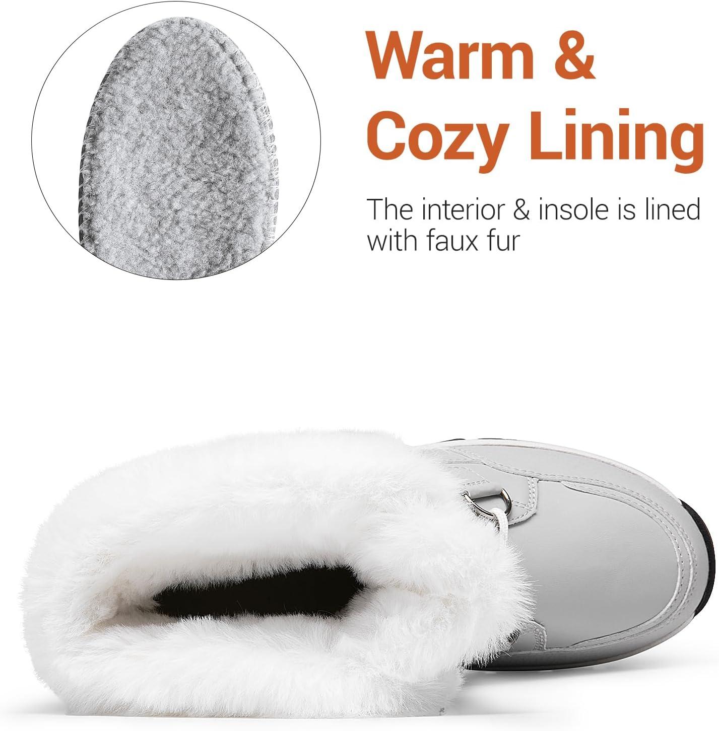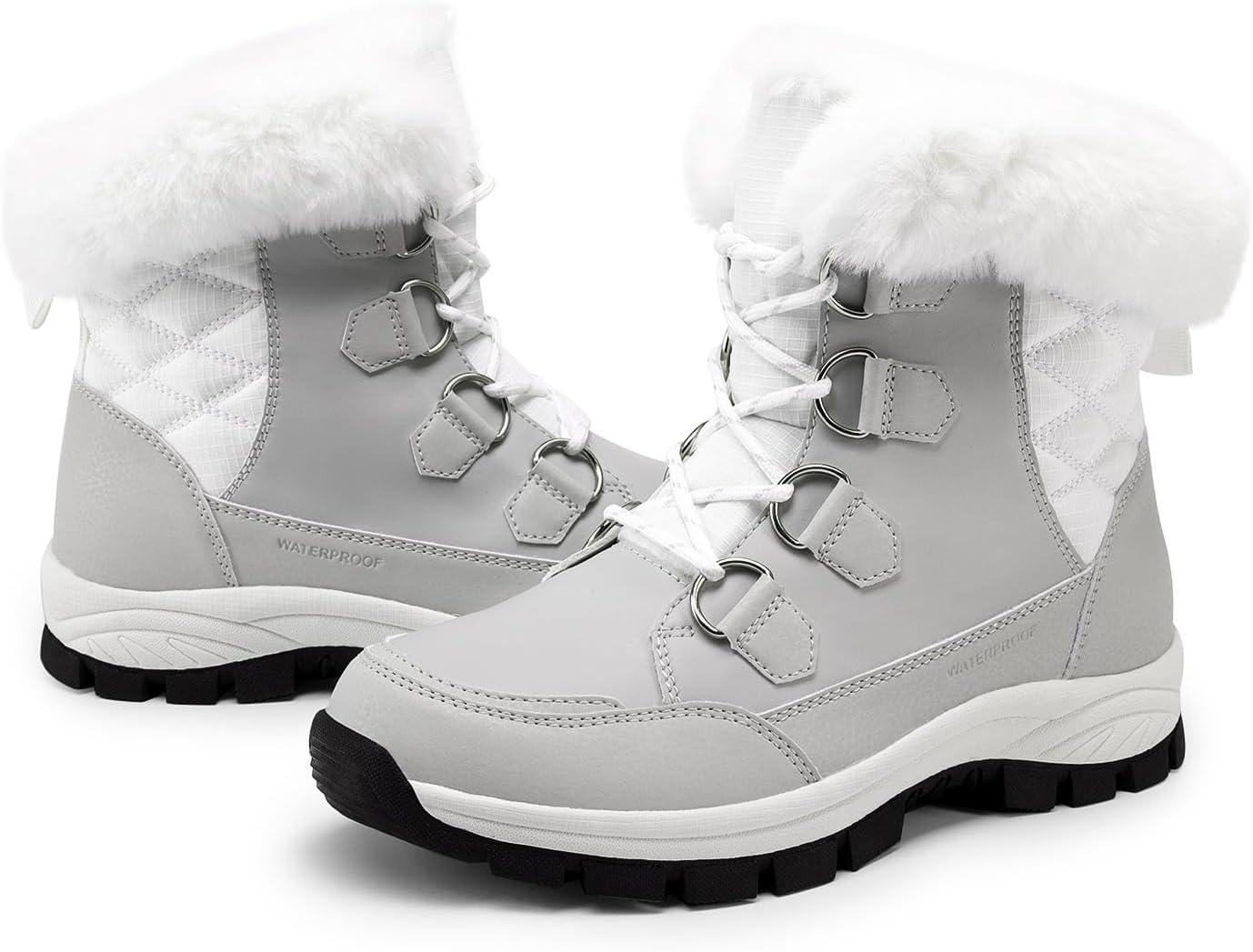 DREAM PAIRS Waterproof Snow Boots for Women, Faux Fur Cozy Warm Insulated Winter Boots Lace Up Mid-Calf Outdoor Shoes for Walking Hiking Hespera(White/Grey)