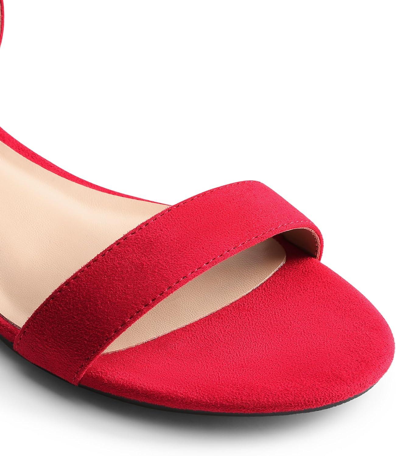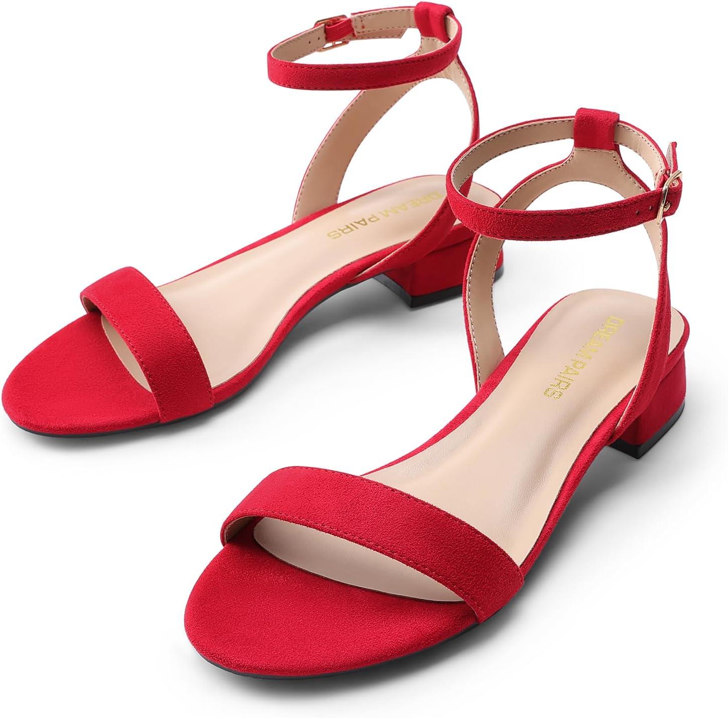 DREAM PAIRS Women Black White Nude Clear Sandals Low Heel Dressy Sandals Ankle Strap Open Toe Chunky Block Heeled Summer Classic Comfortable Flat Shoes(Red)