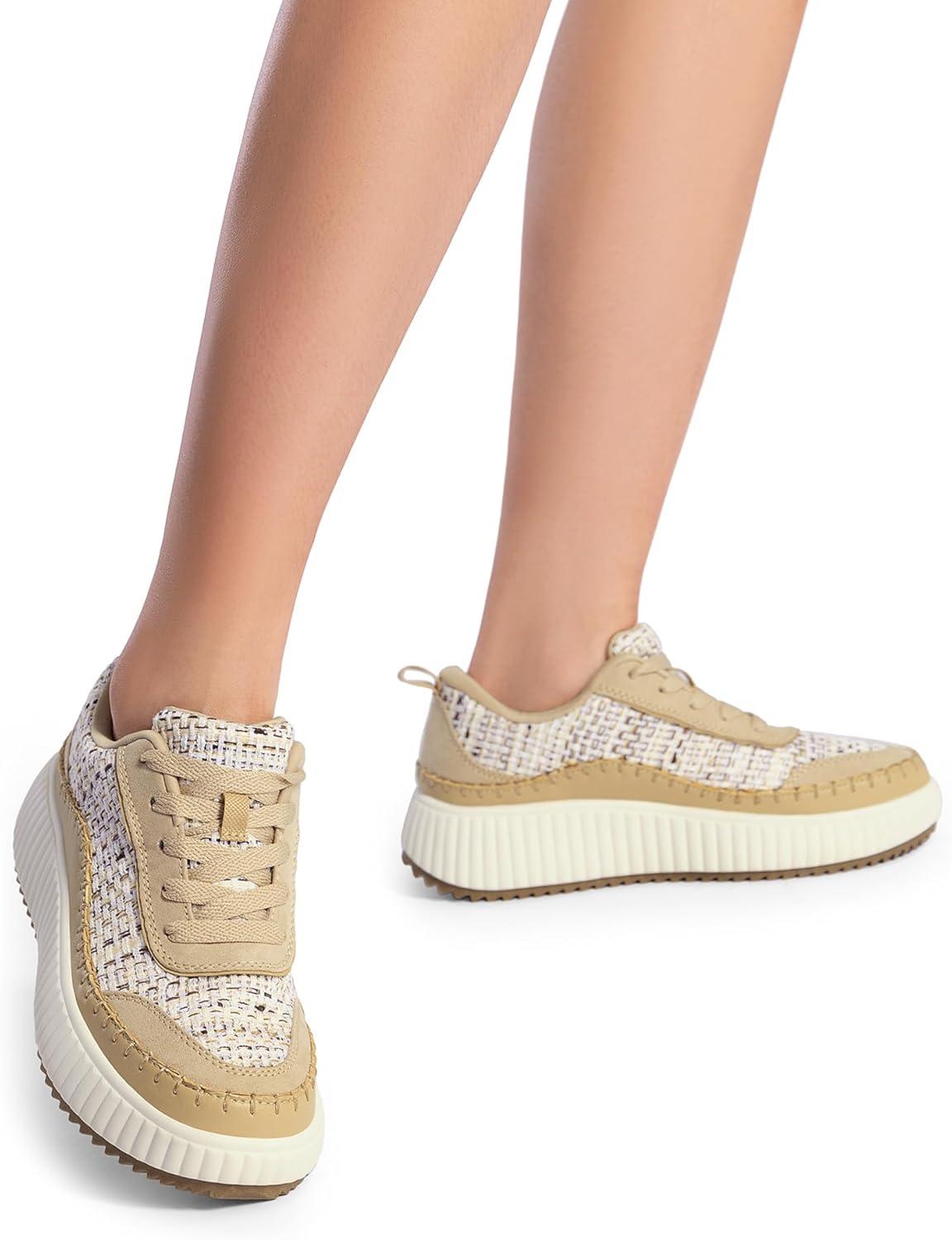 DREAM PAIRS Women Chunky City Tweed Comfortable Casual Platform Fashion Sneaker(Khaki-knit)