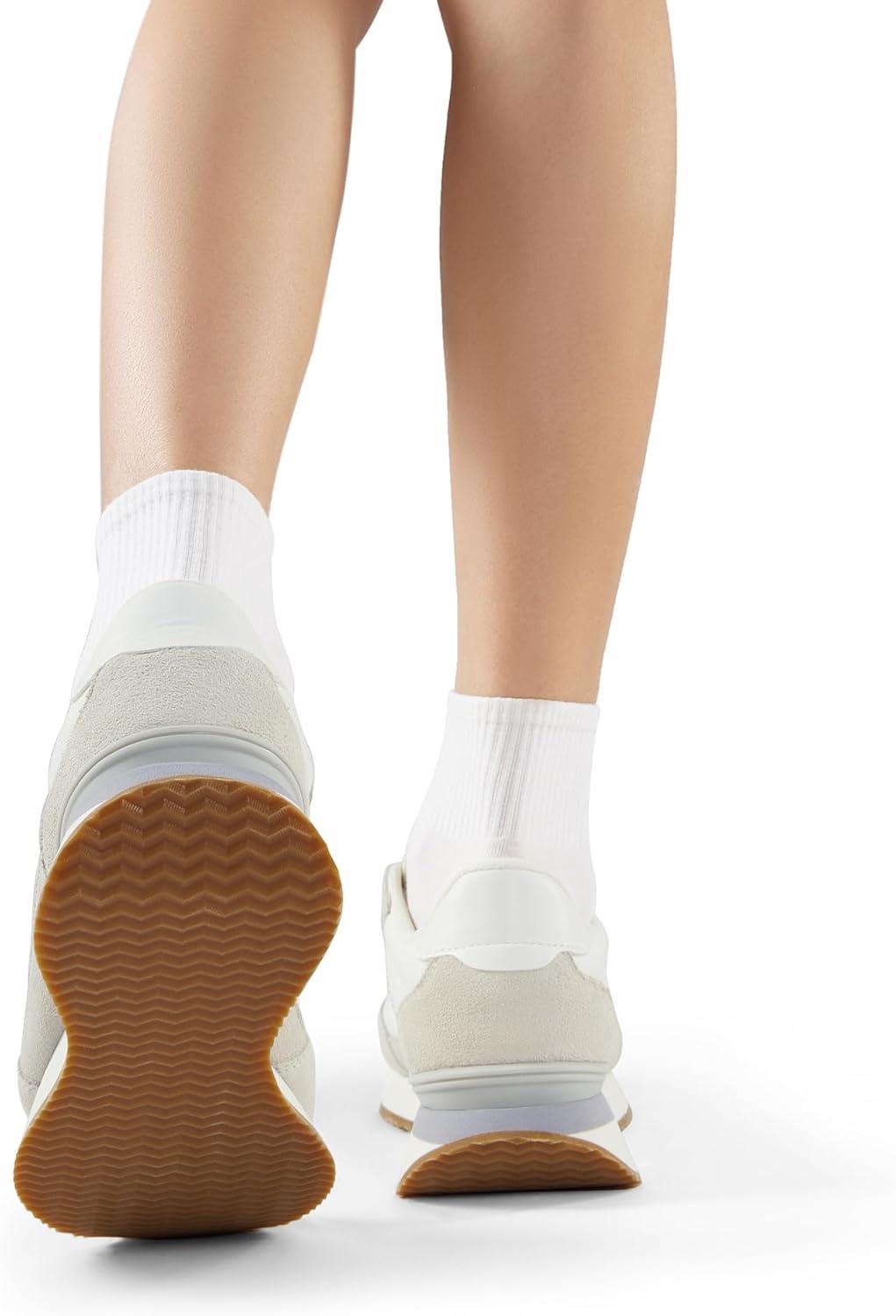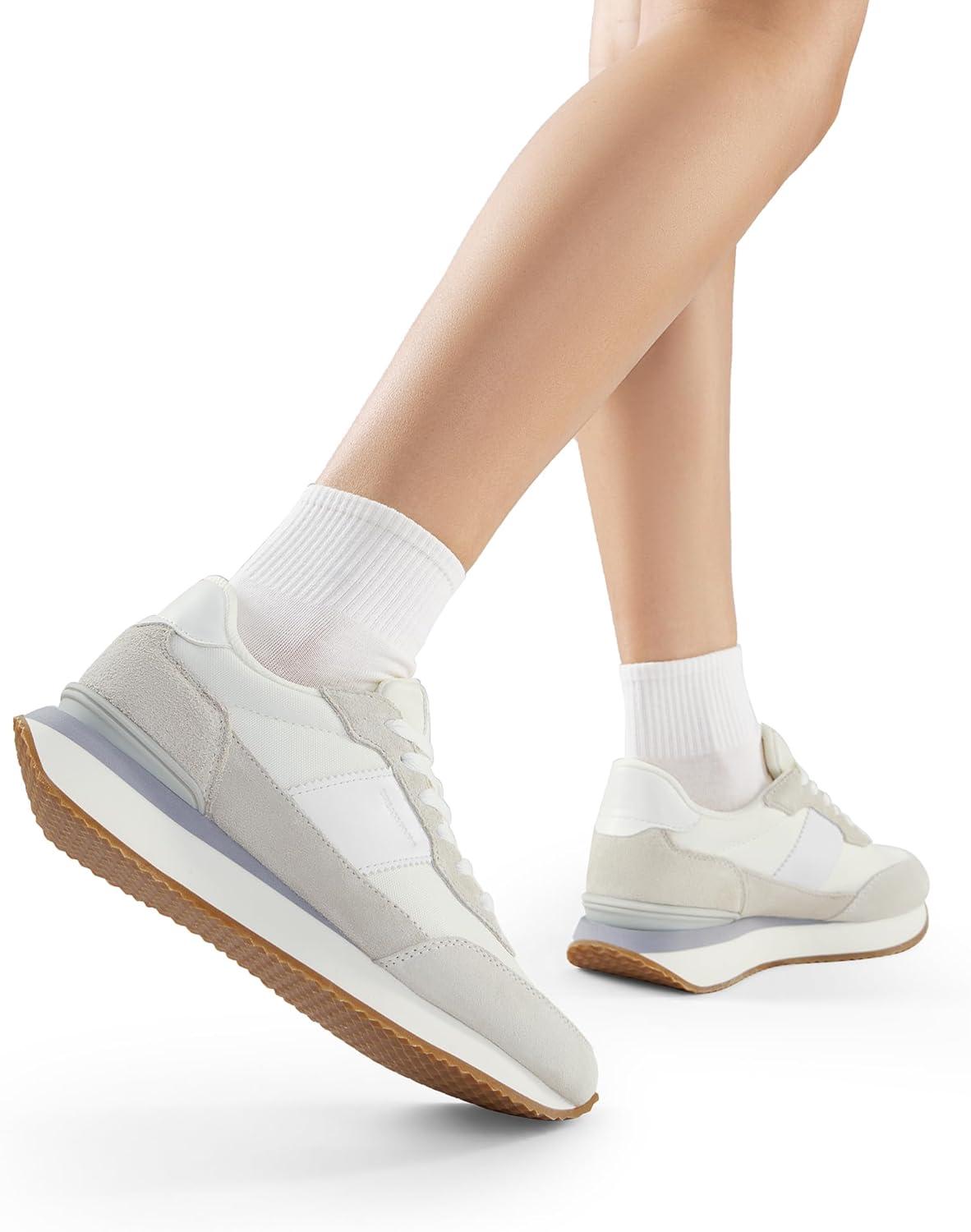 DREAM PAIRS Women Fashion Sneakers Walking Tennis Sports Athletic Comfortable Lightweight Running Lace Up Retro Classic Casual Sneaker(White/Beige)