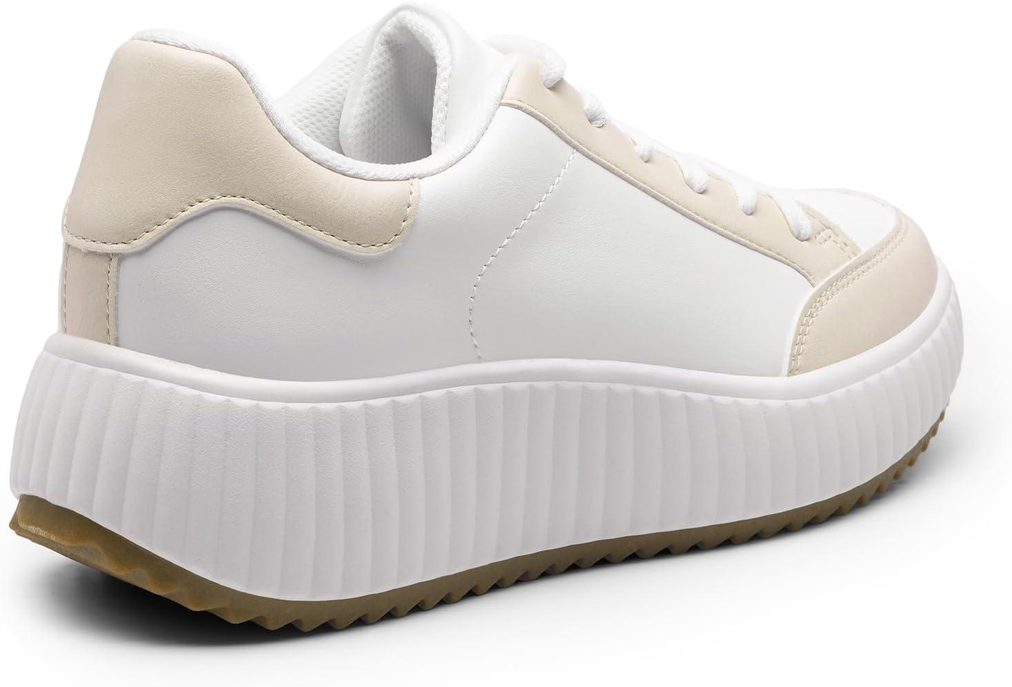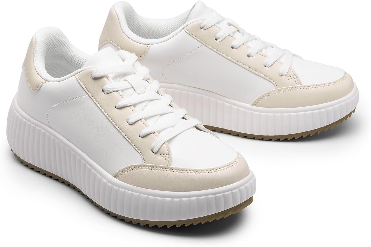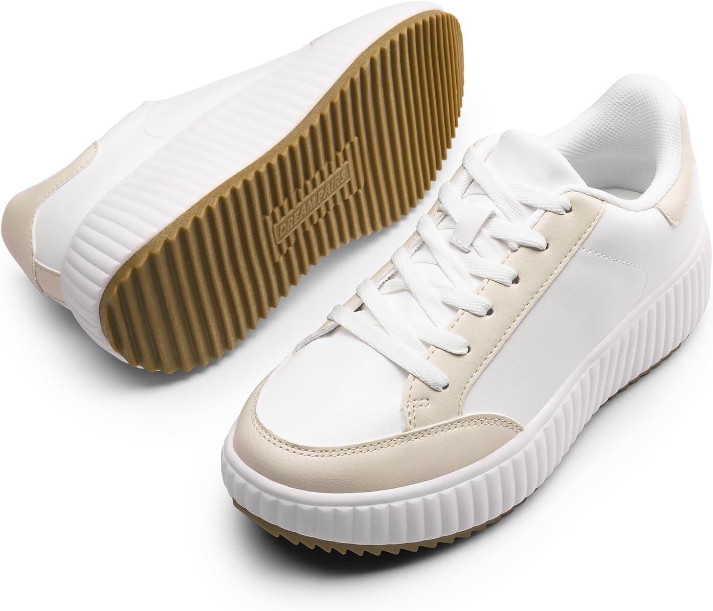 DREAM PAIRS Women Platform Chunky Lightweight Comfortable Casual Faux Leather Lace-Up Dee Walking Fashion Sneakers(White/Apricot)