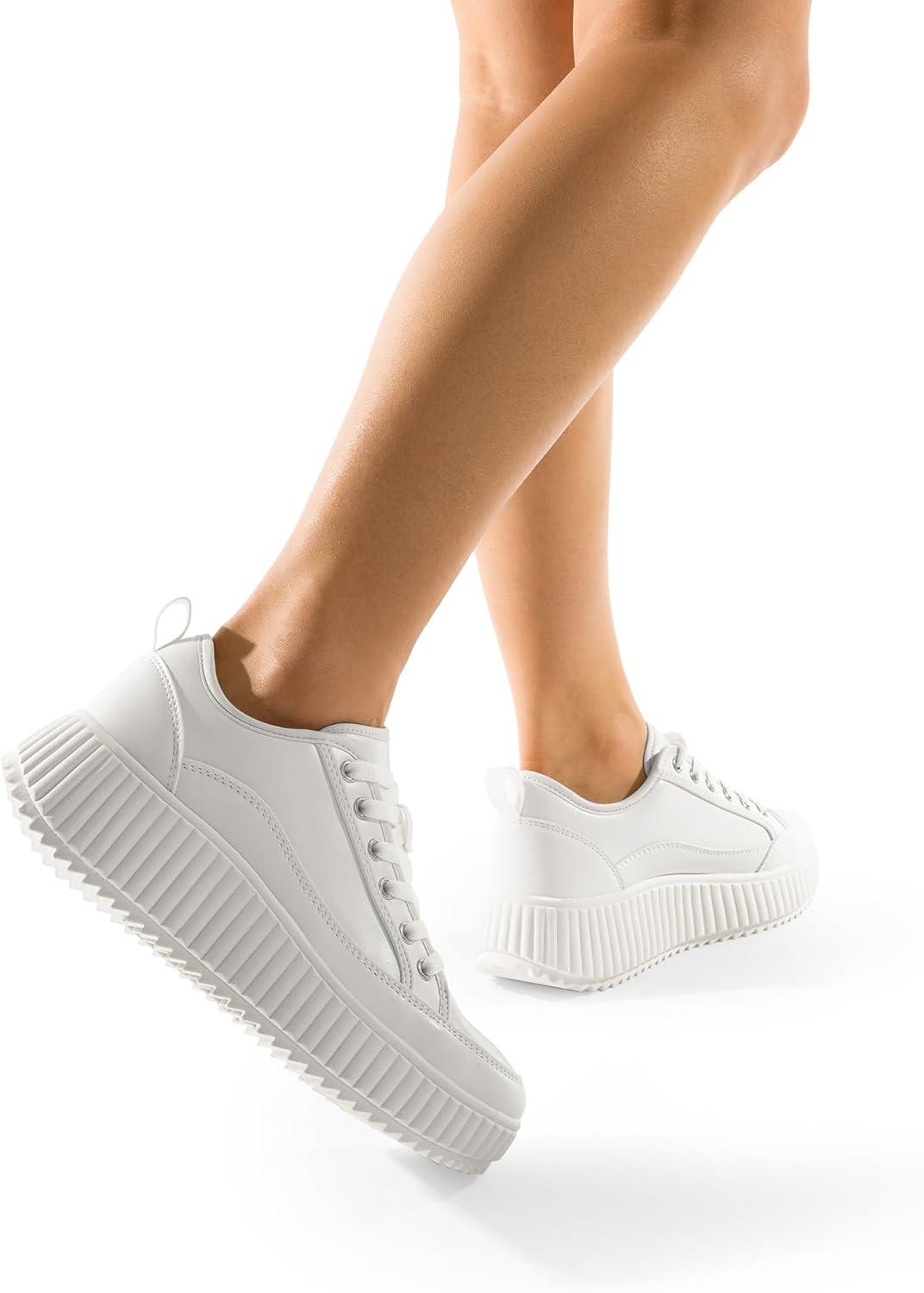DREAM PAIRS Women Platform Chunky Lightweight Comfortable Casual Lace-Up Sky Walking Fashion Sneakers(White/Pu)