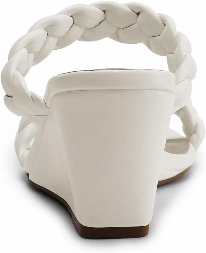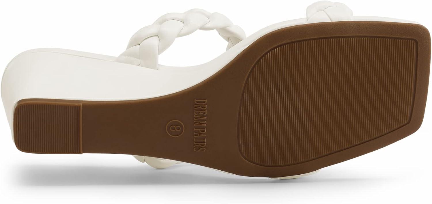 DREAM PAIRS Women Slides Wedge Sandals Braided Straps Square Open Toe Dress Casual Shoes(White)