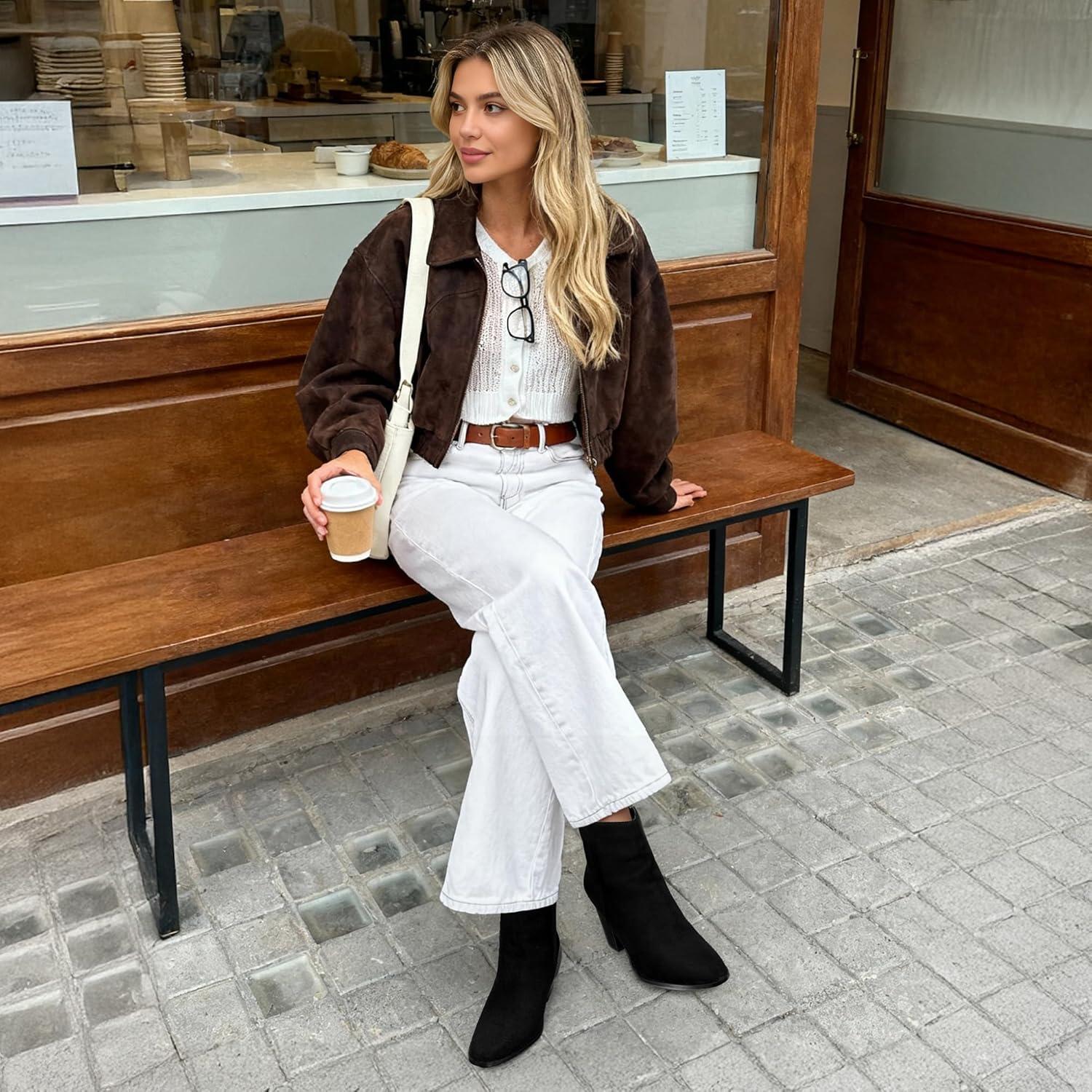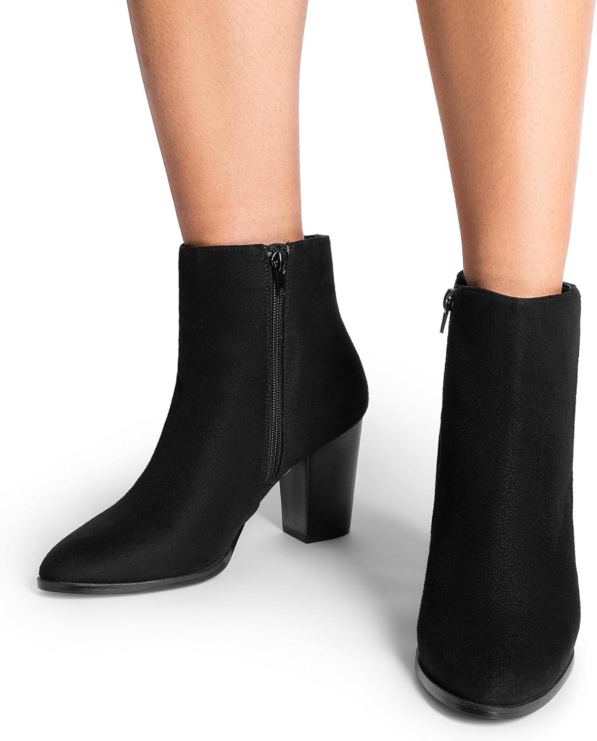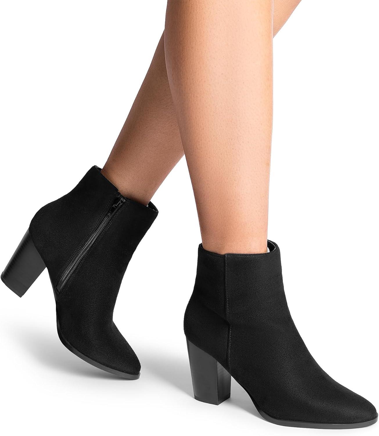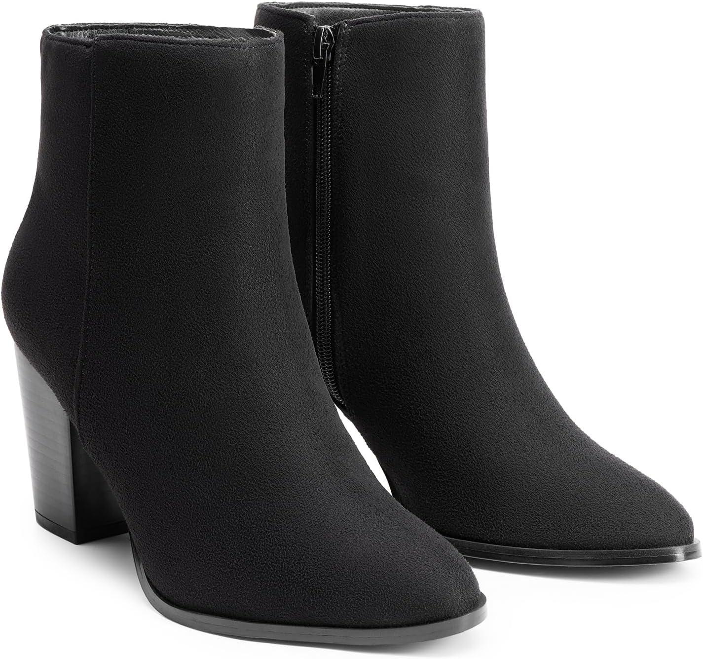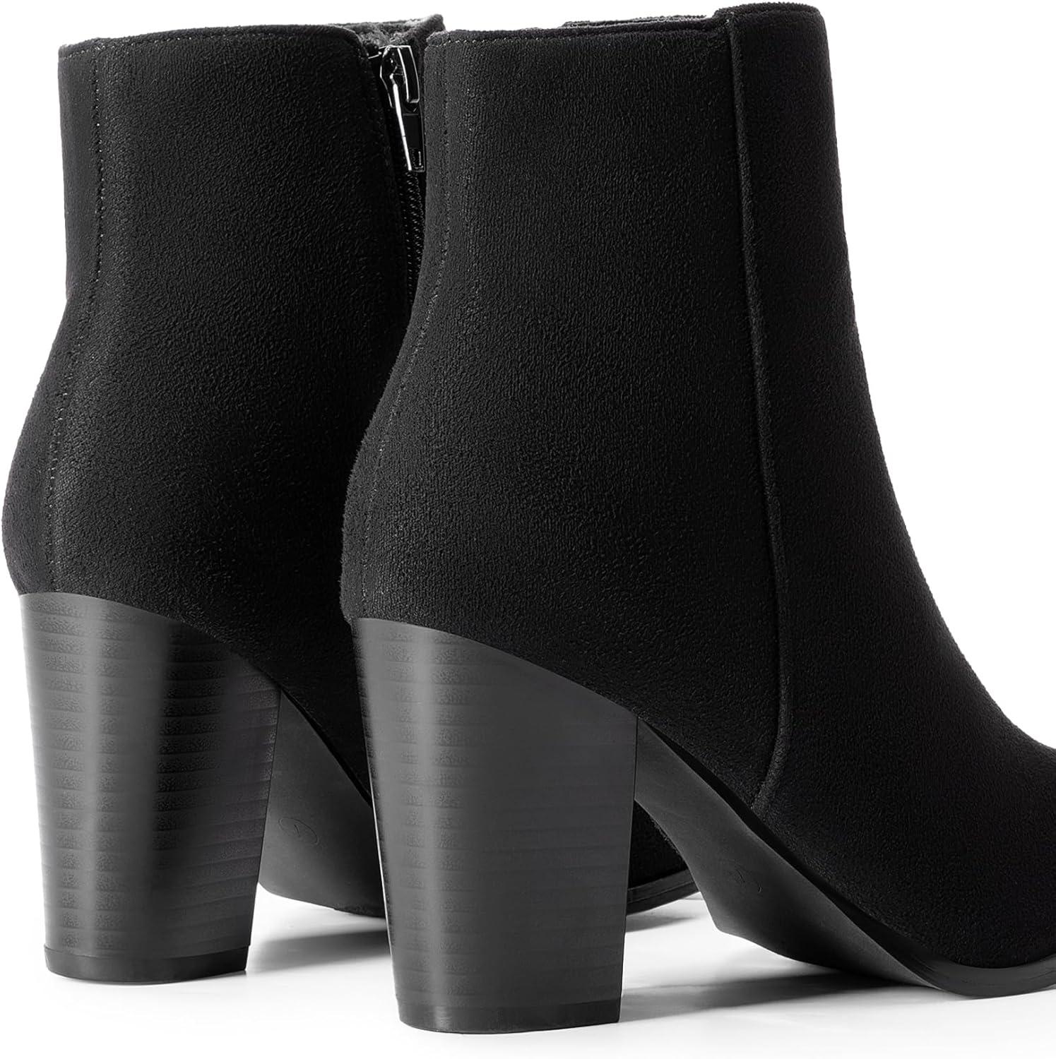 DREAM PAIRS Women’s Ankle Boots Chunky Block Heel Booties(Black/Suede)