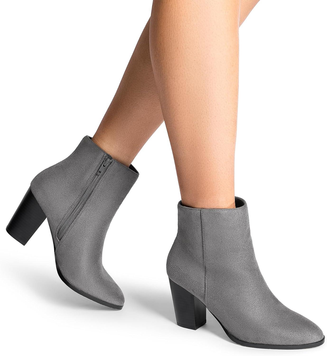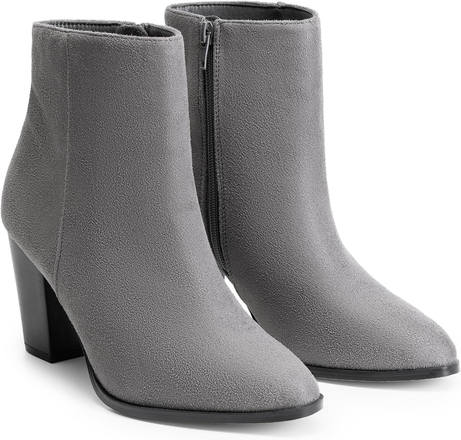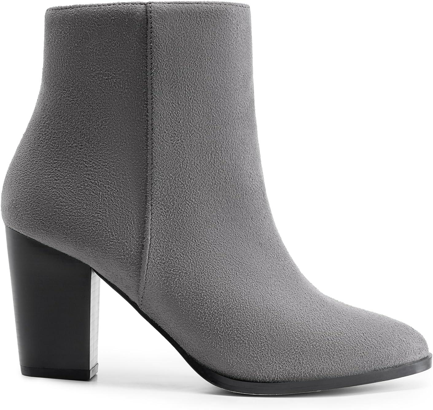 DREAM PAIRS Women’s Ankle Boots Chunky Block Heel Booties(Grey/Suede)