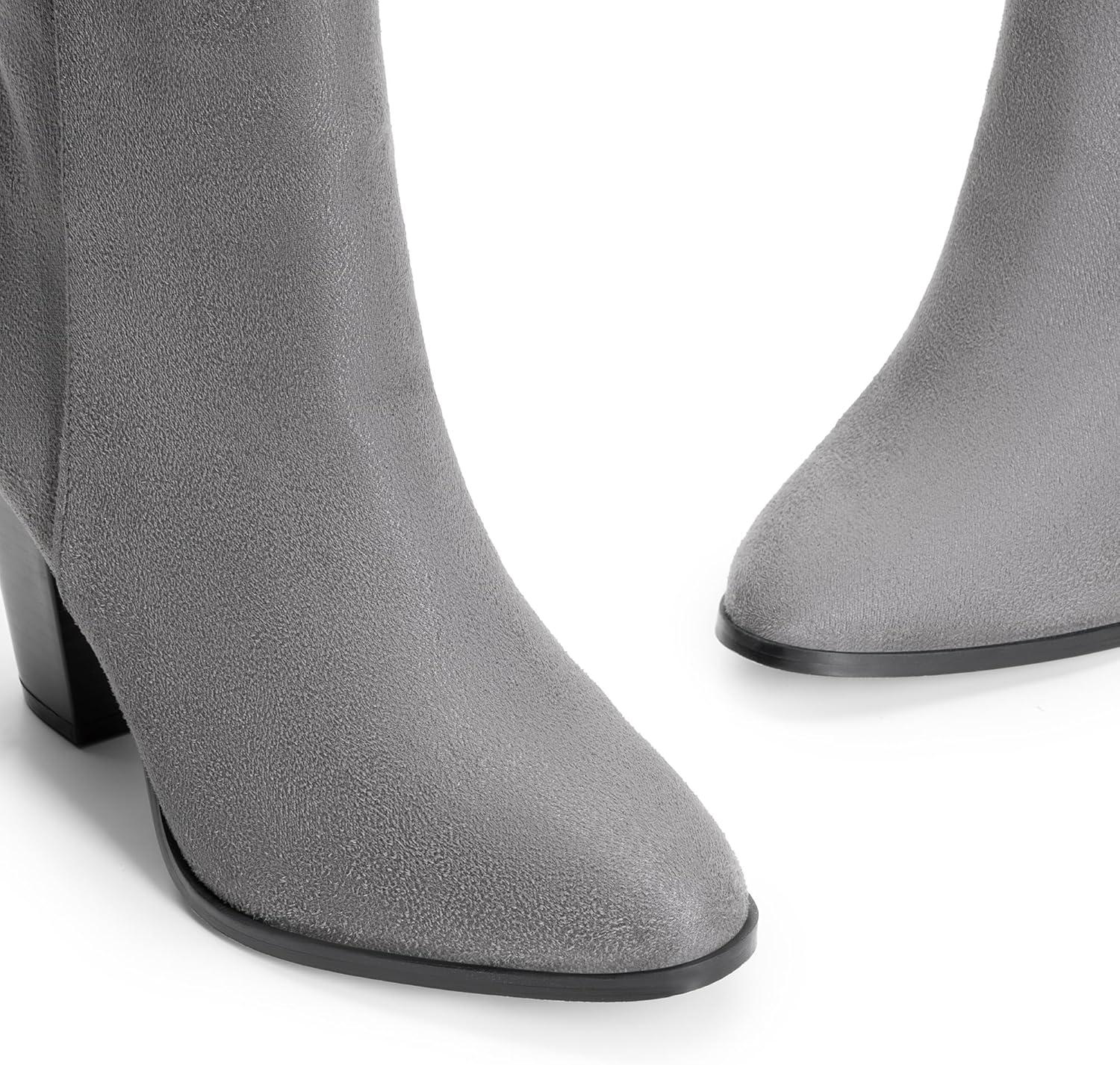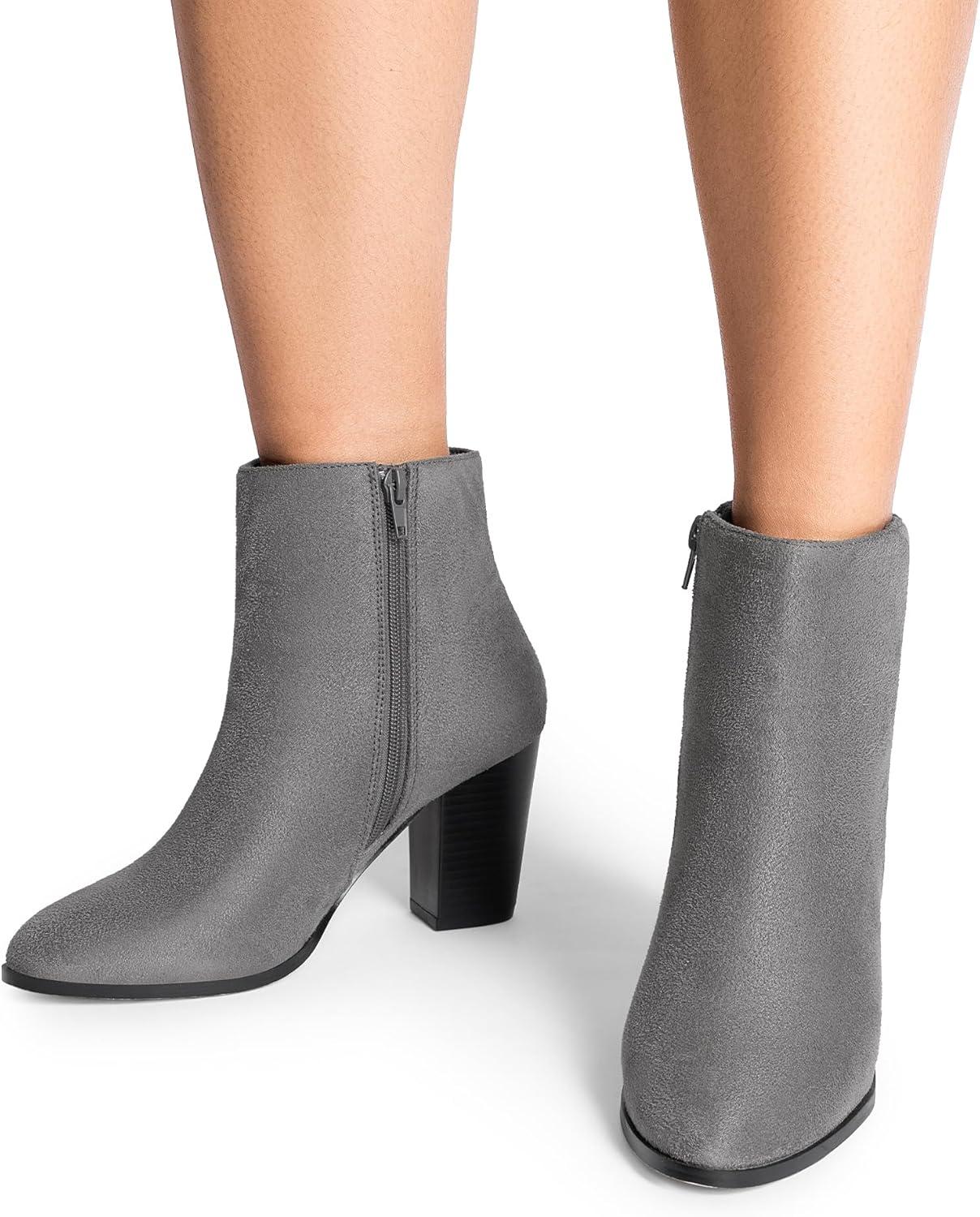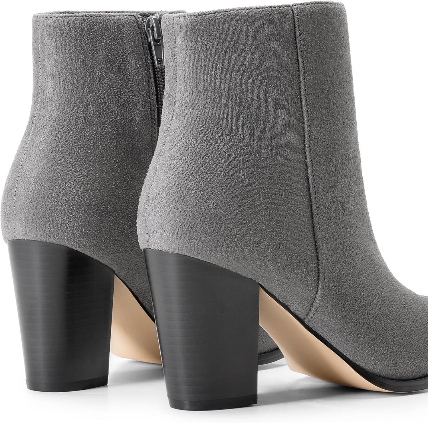DREAM PAIRS Women’s Ankle Boots Chunky Block Heel Booties(Grey/Suede)