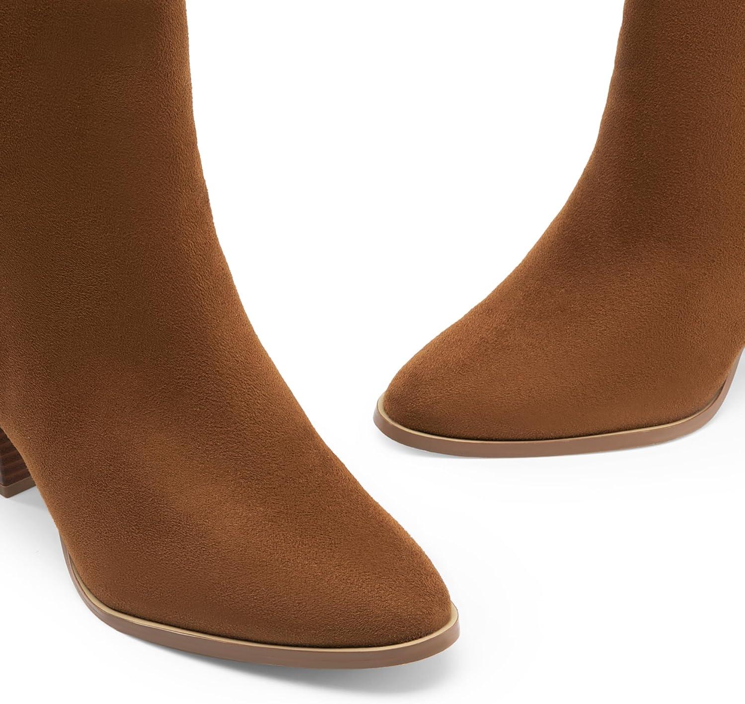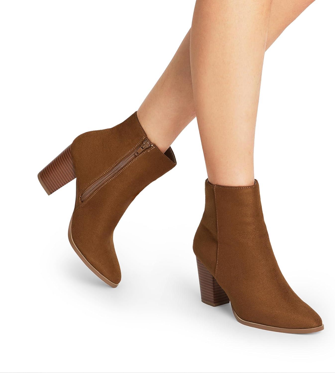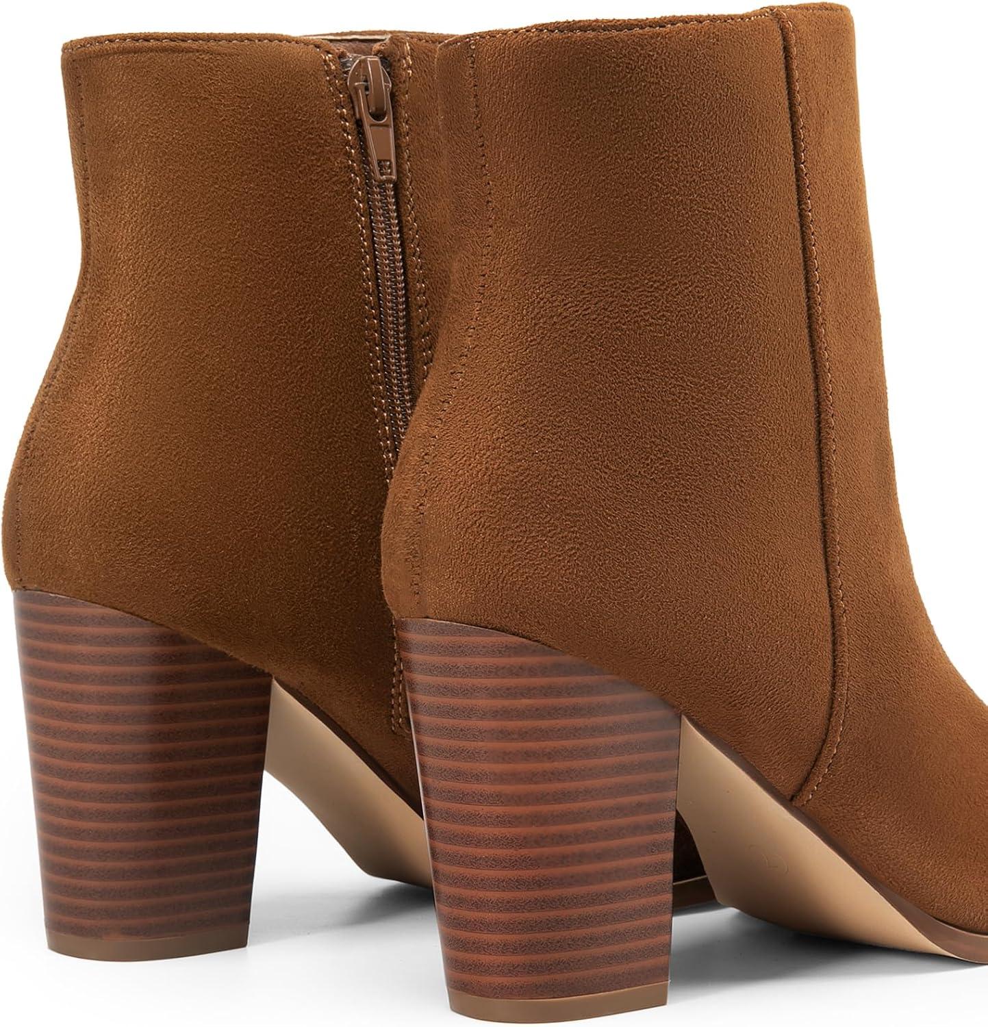 DREAM PAIRS Women’s Ankle Boots Chunky Block Heel Booties(Tan/Suede)