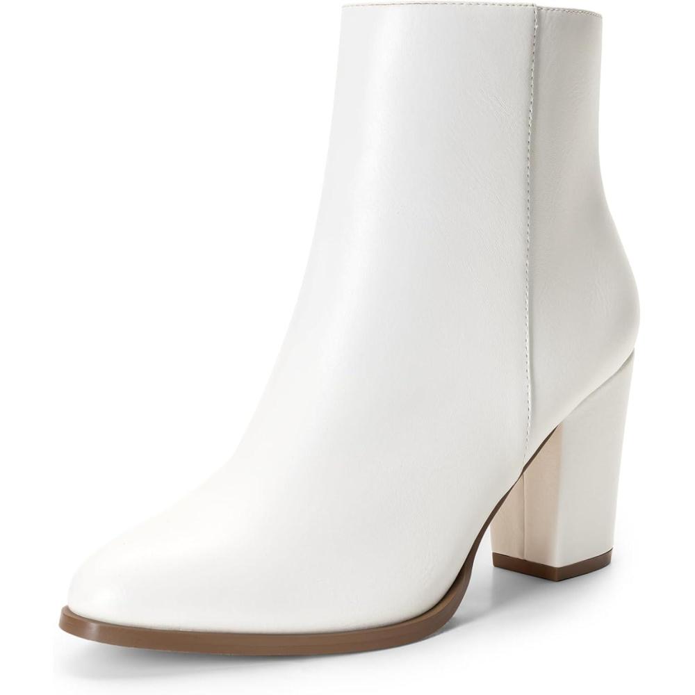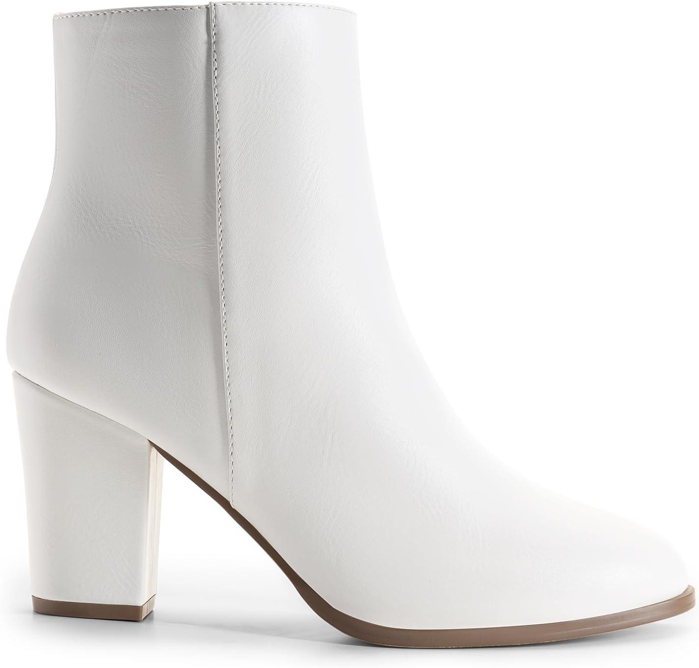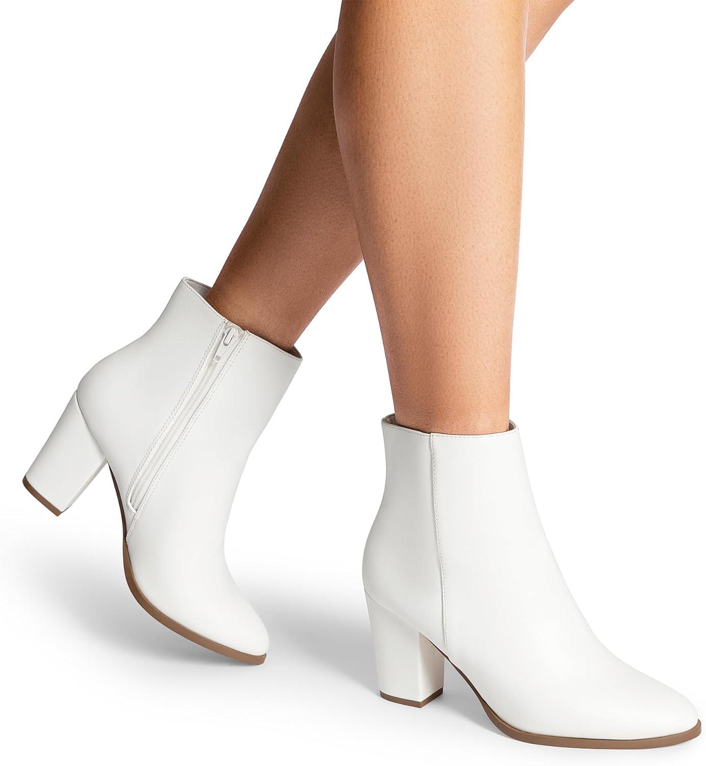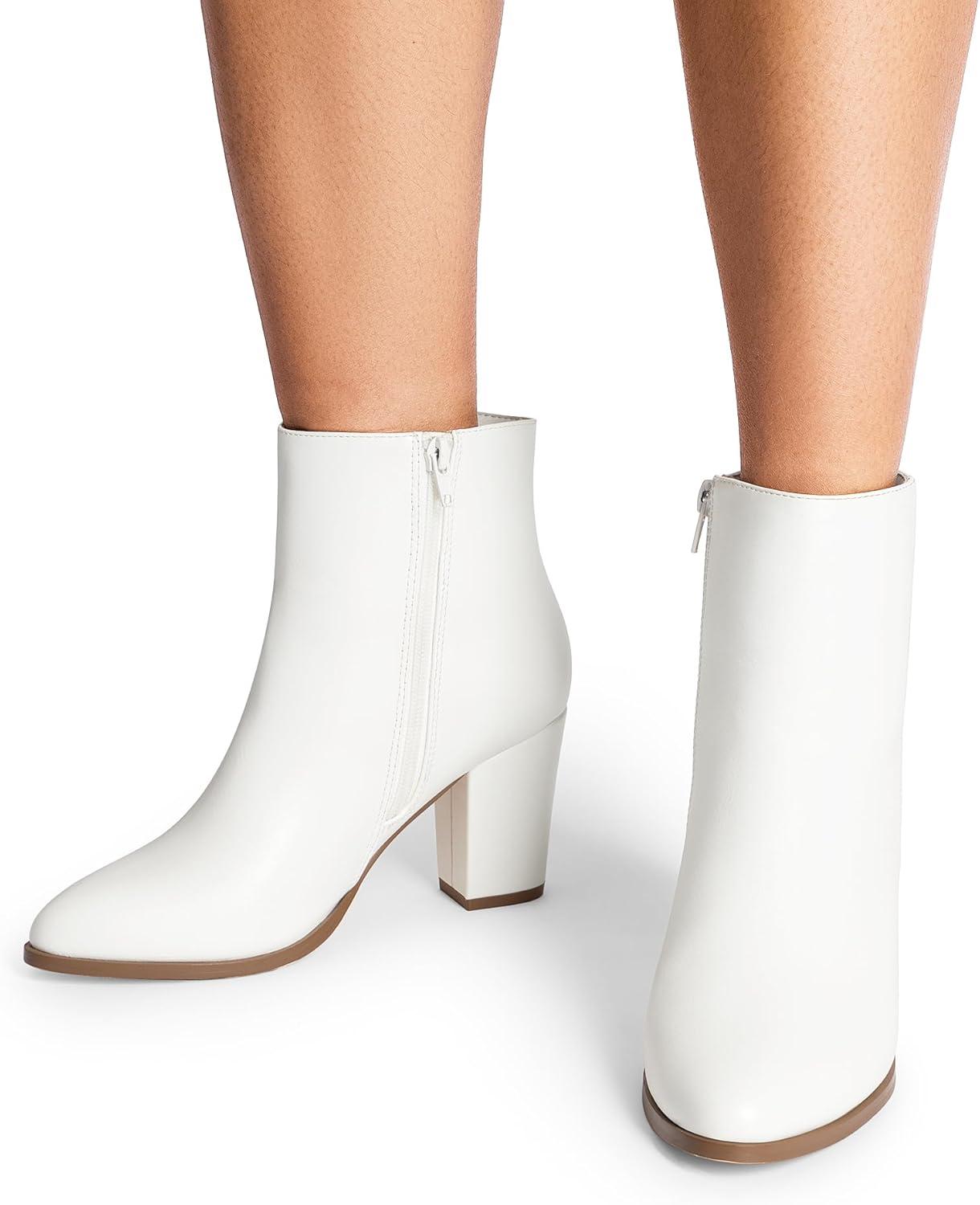 DREAM PAIRS Women’s Ankle Boots Chunky Block Heel Booties(White-pu)