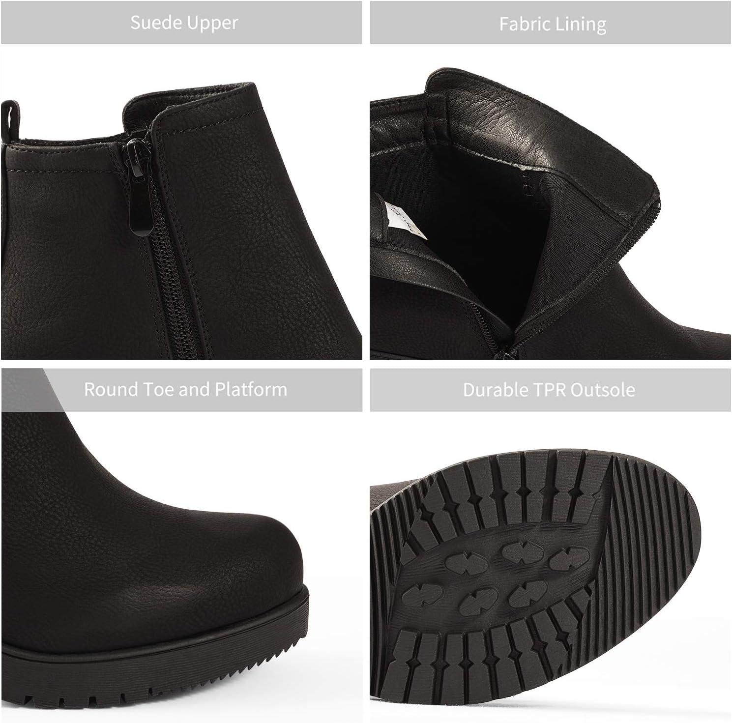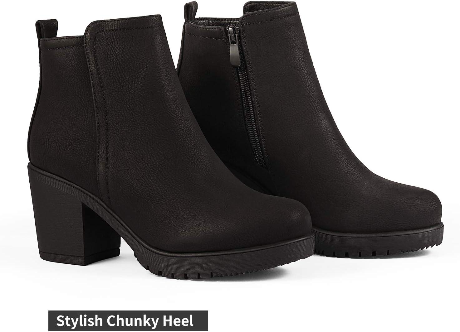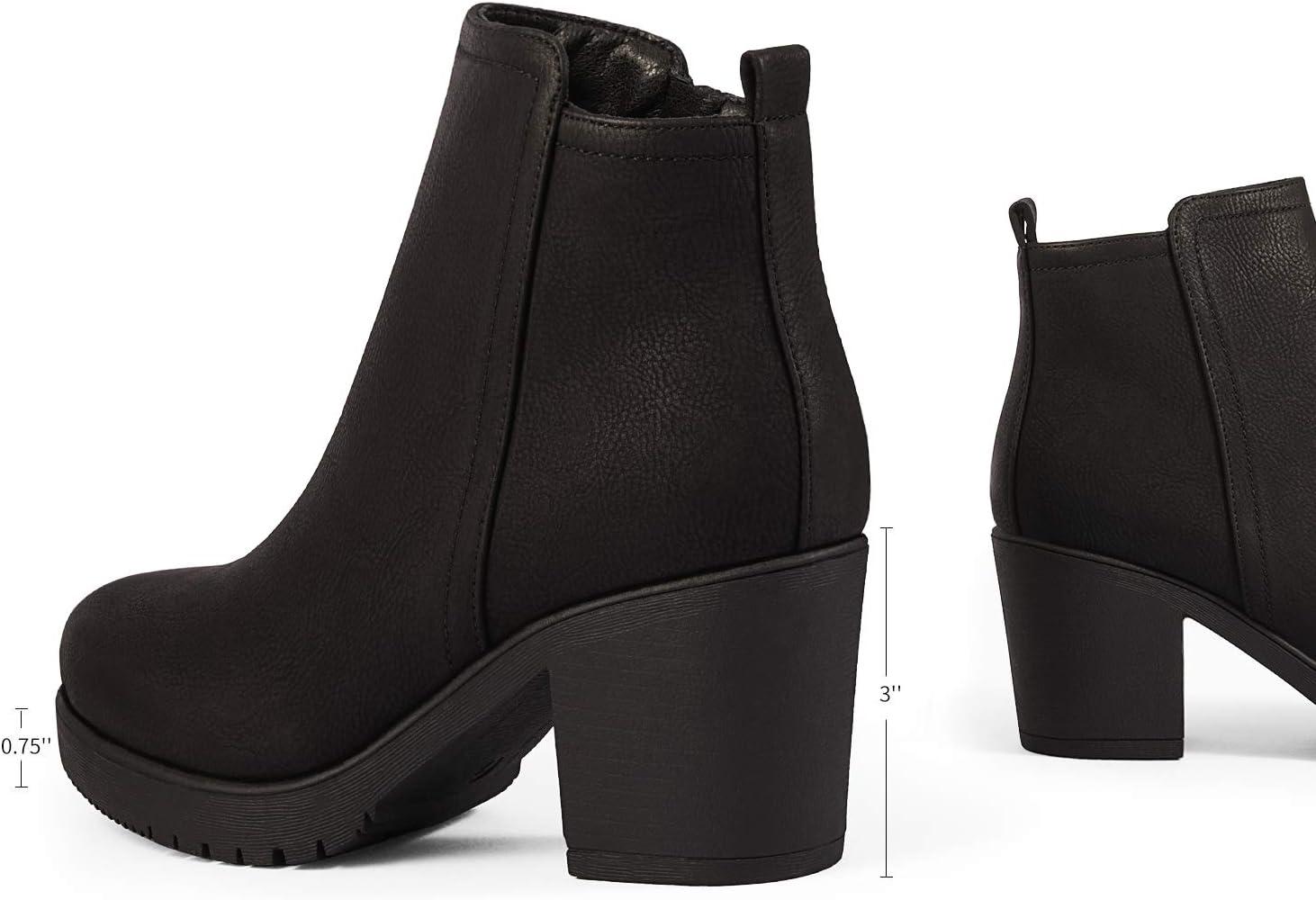 DREAM PAIRS Women’s Ankle Boots Chunky Heel Platform Fall Heeled Short Booties Shoes(Black/Pu)