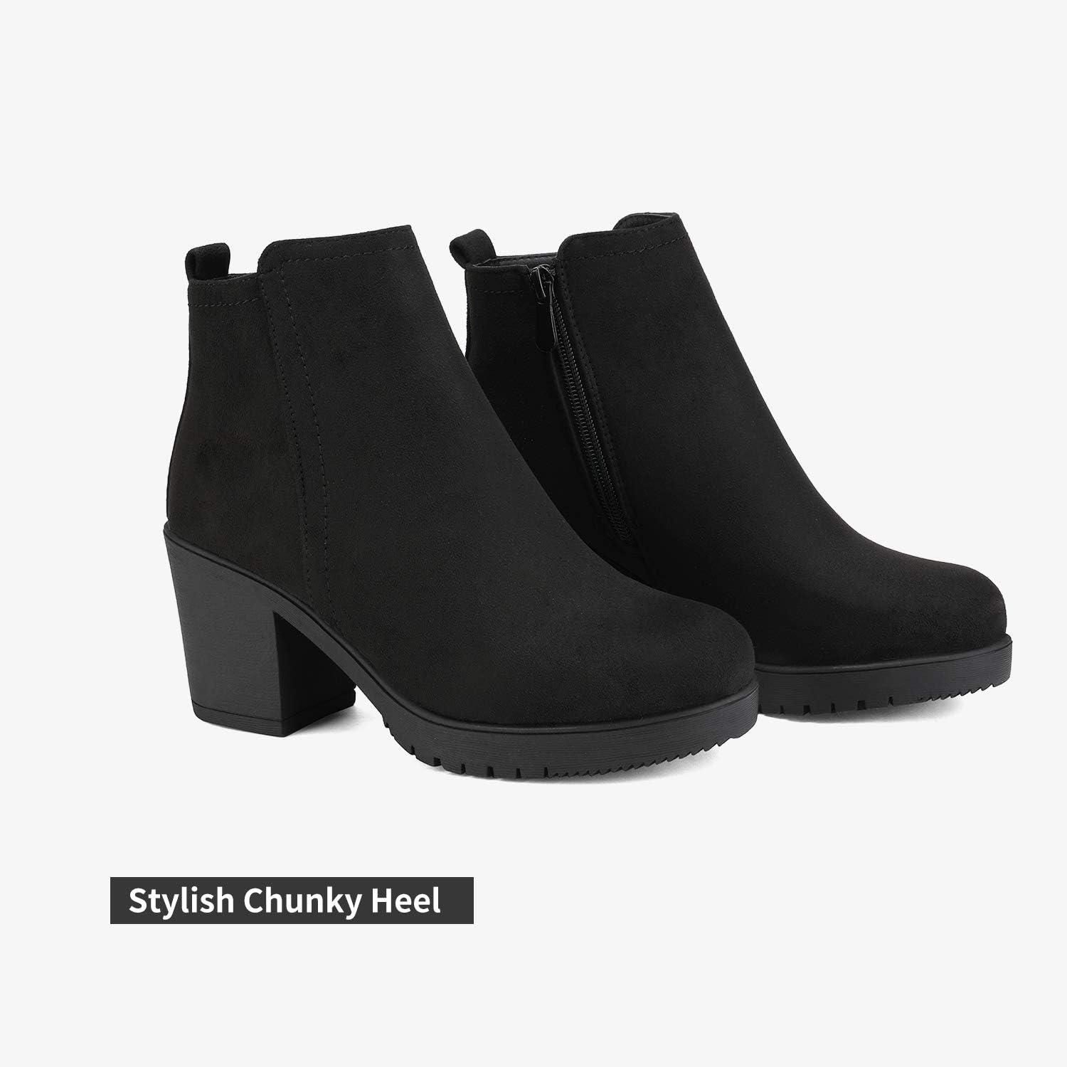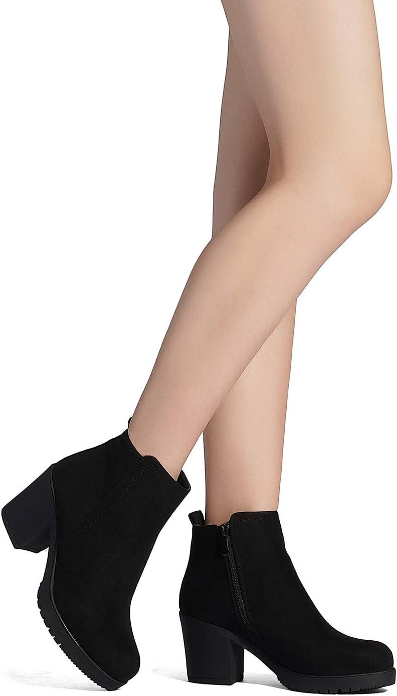 DREAM PAIRS Women’s Ankle Boots Chunky Heel Platform Fall Heeled Short Booties Shoes(Black)