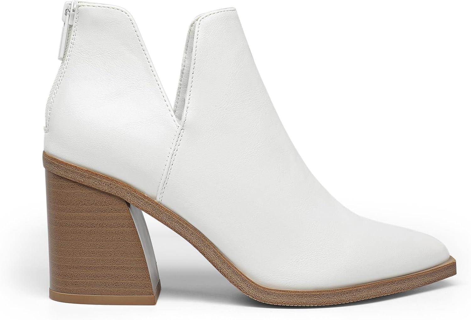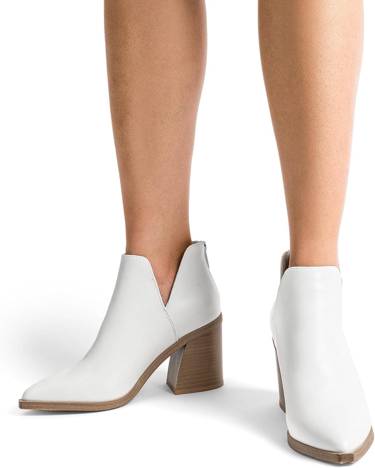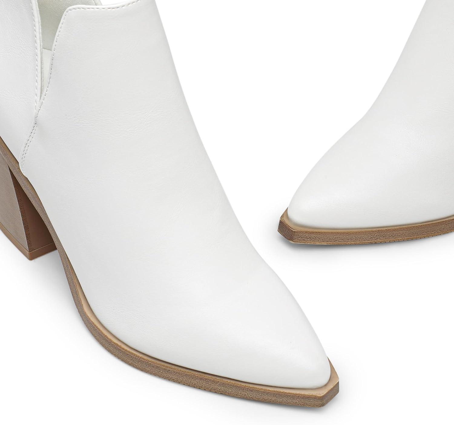 DREAM PAIRS Women’s Ankle Boots Chunky Heel Pointed Toe Short Booties Shoes(White-pu)