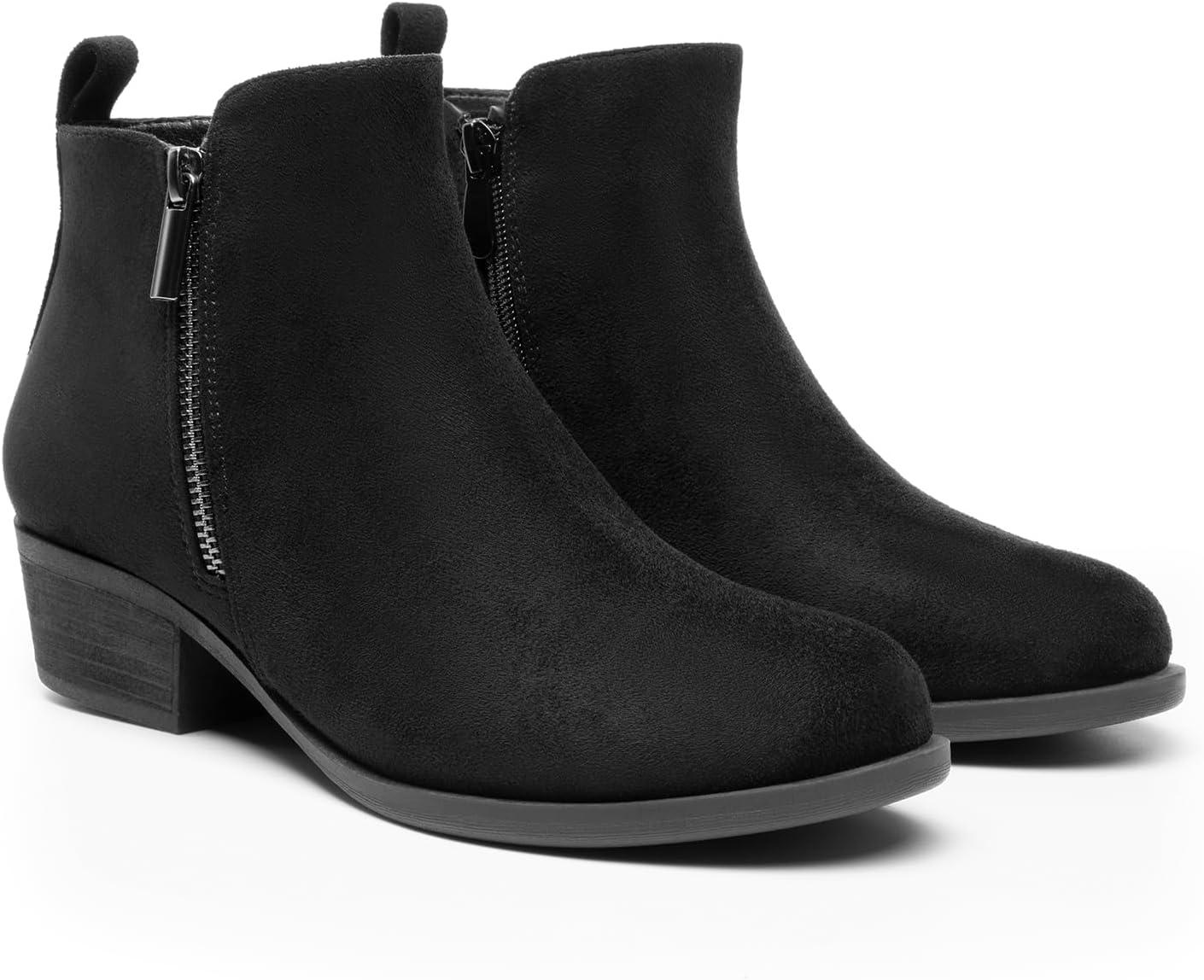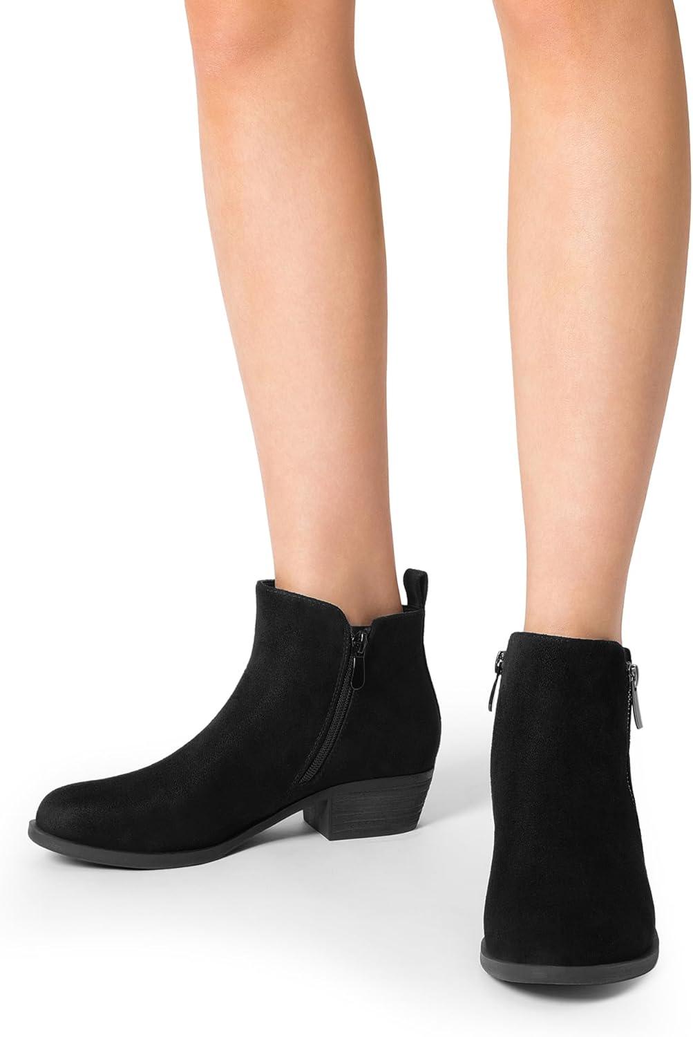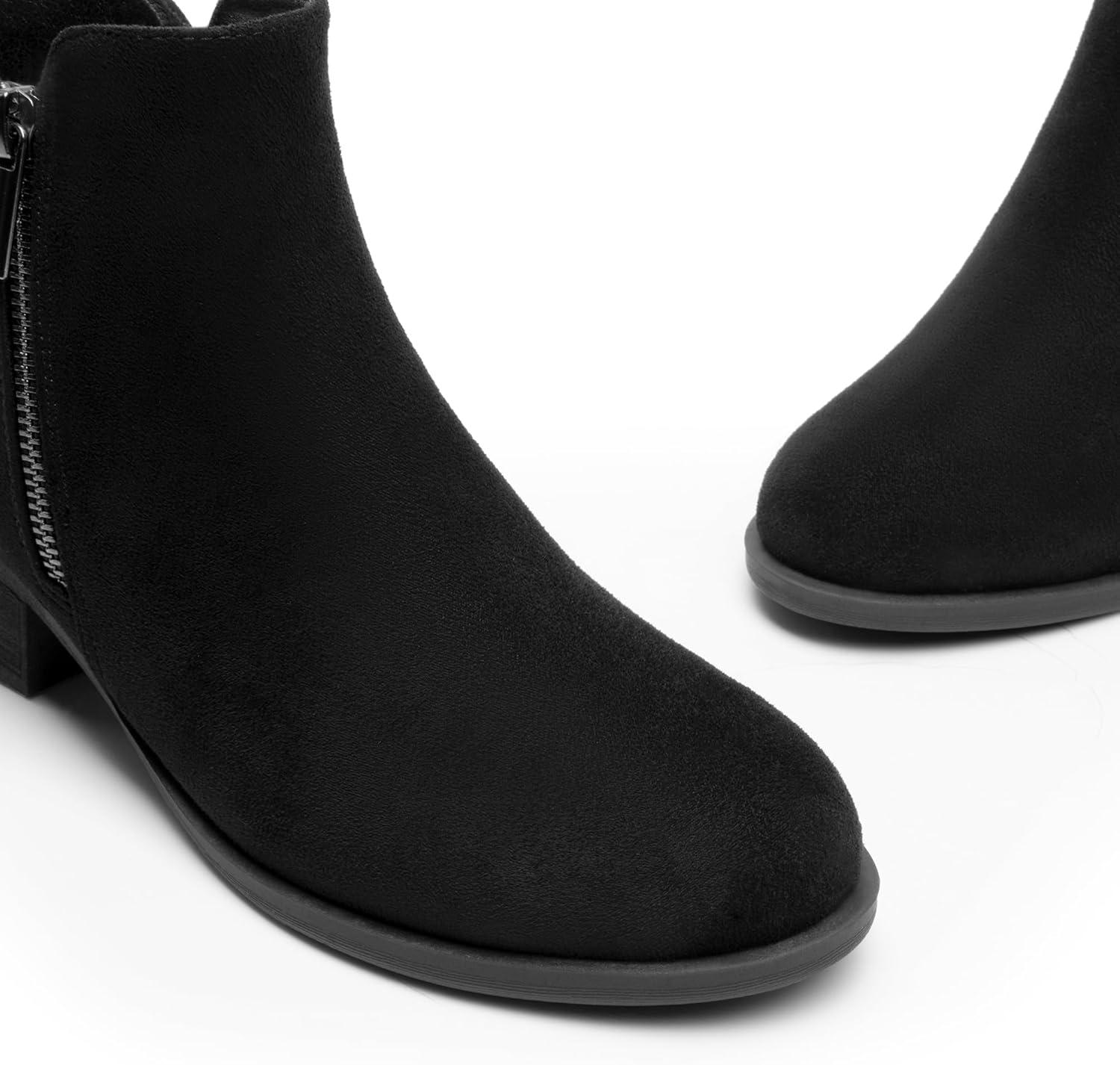DREAM PAIRS Women’s Ankle Boots Classic Low Chunky Heel Side Zipper Booties Shoes(Black-suede)
