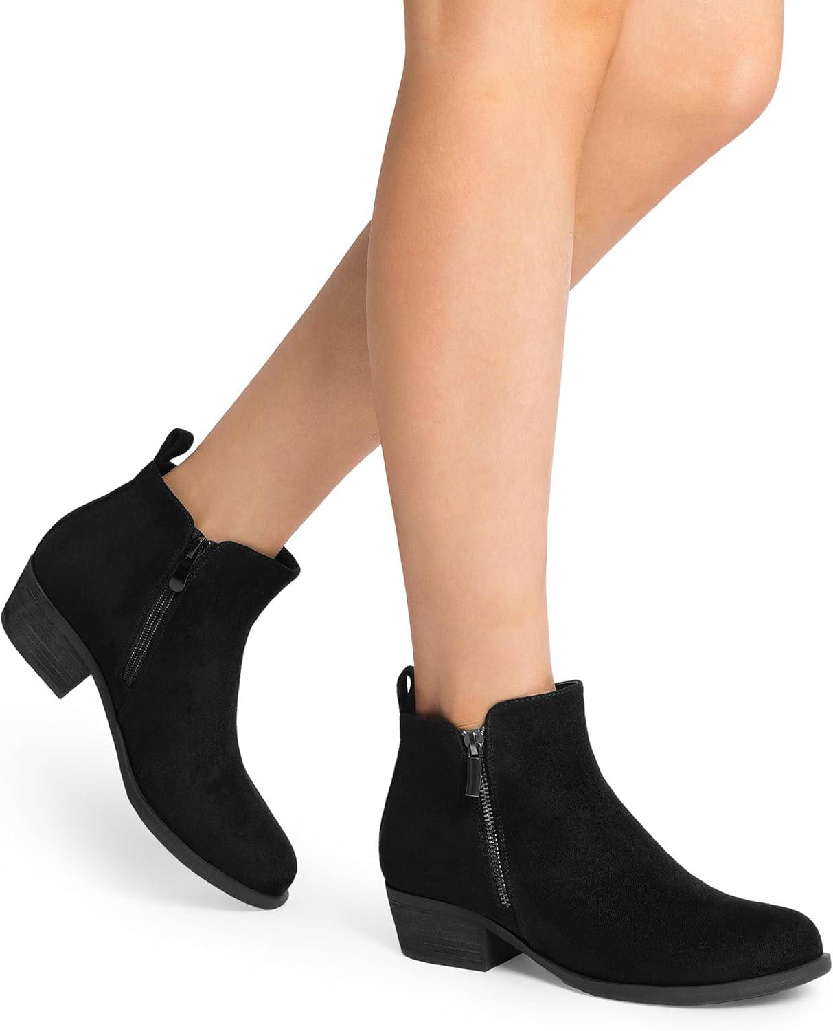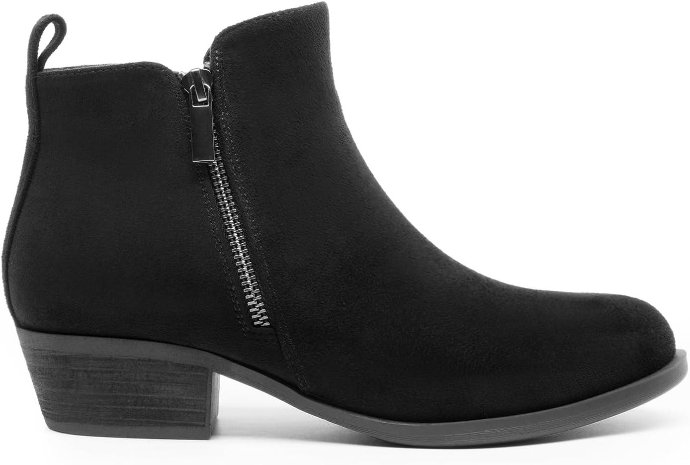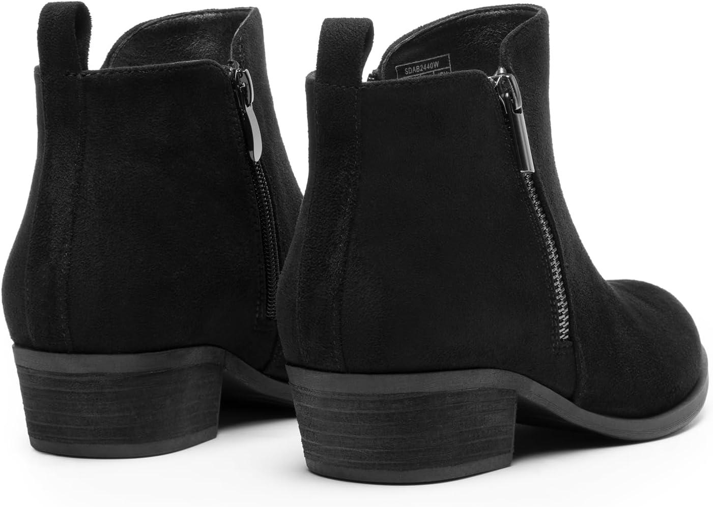DREAM PAIRS Women’s Ankle Boots Classic Low Chunky Heel Side Zipper Booties Shoes(Black-suede)