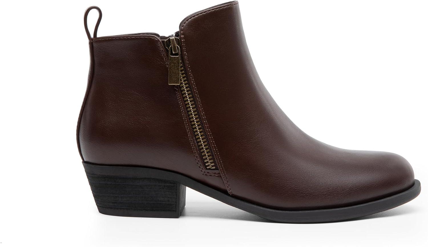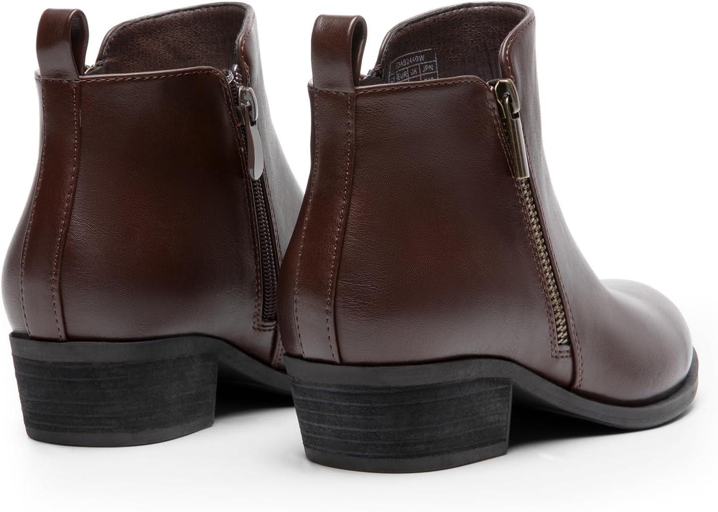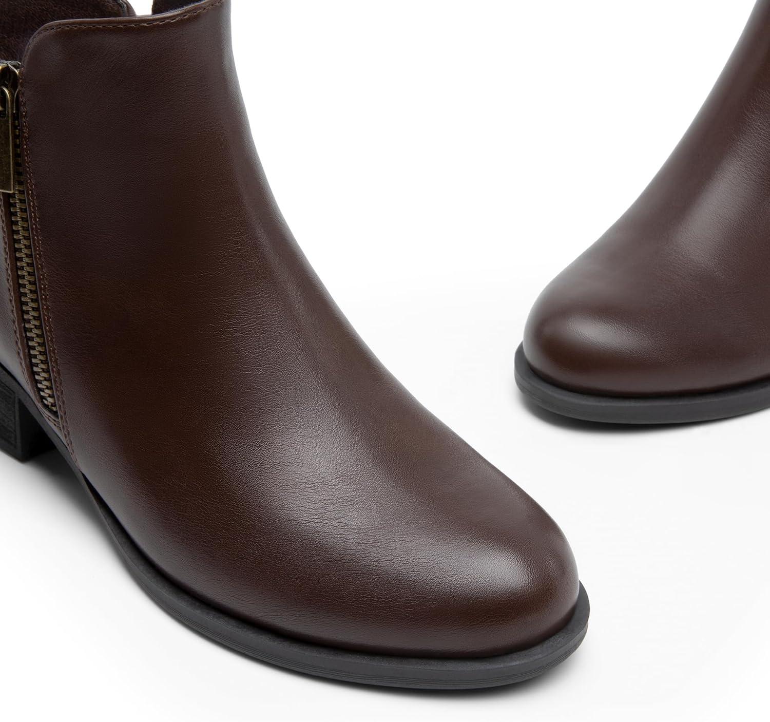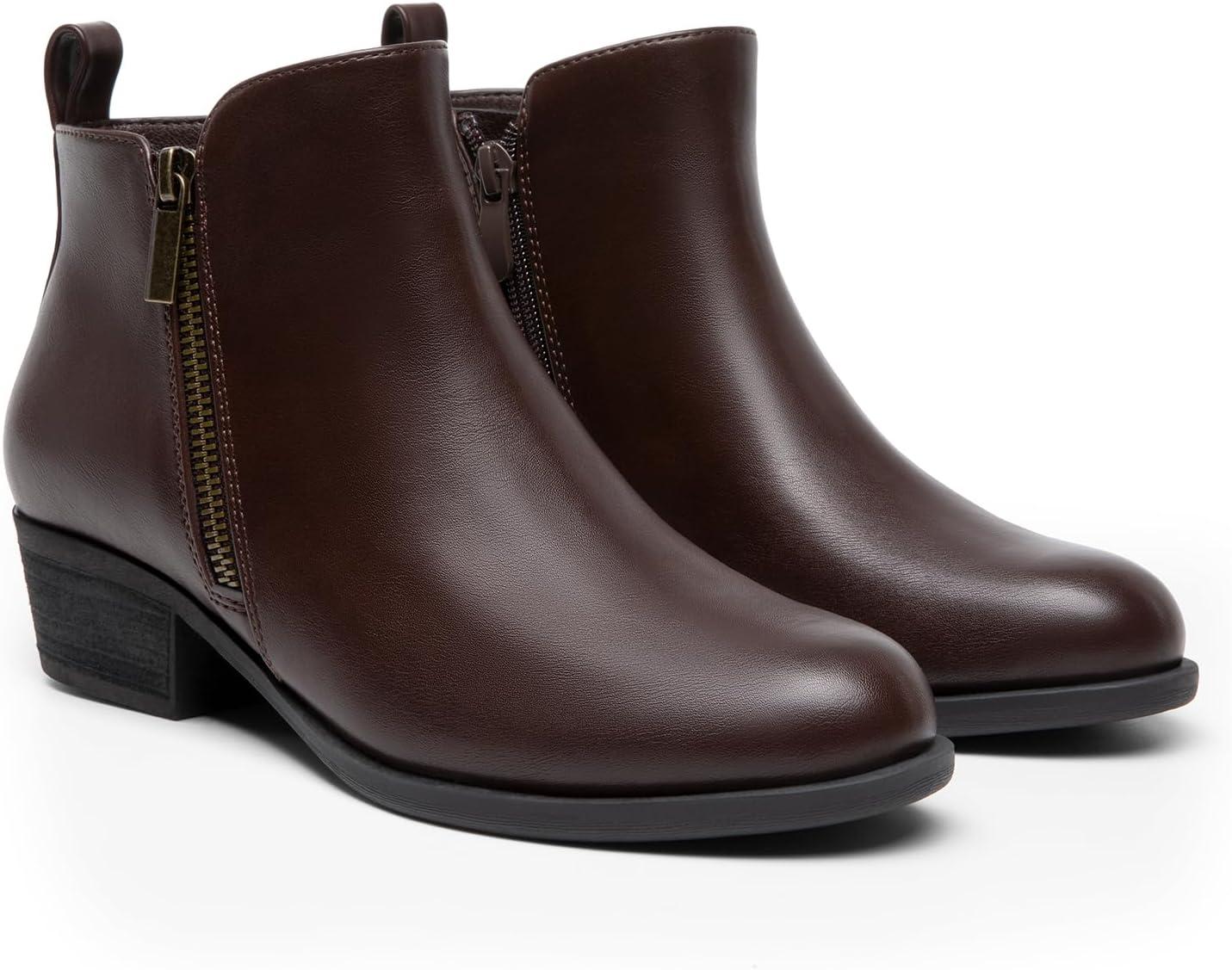DREAM PAIRS Women’s Ankle Boots Classic Low Chunky Heel Side Zipper Booties Shoes(Brown-pu)