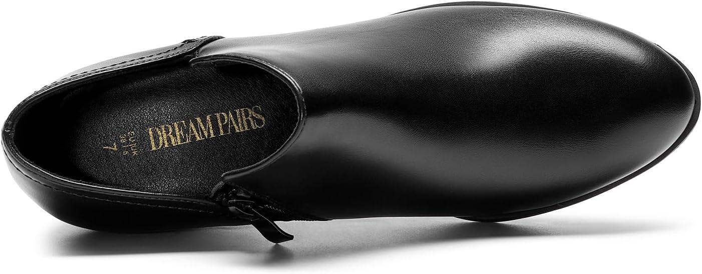 DREAM PAIRS Women’s Ankle Boots Fall Boots Leather Thick Heel Side Zip Women Low Chunky Heeled Booties(Black-pu)